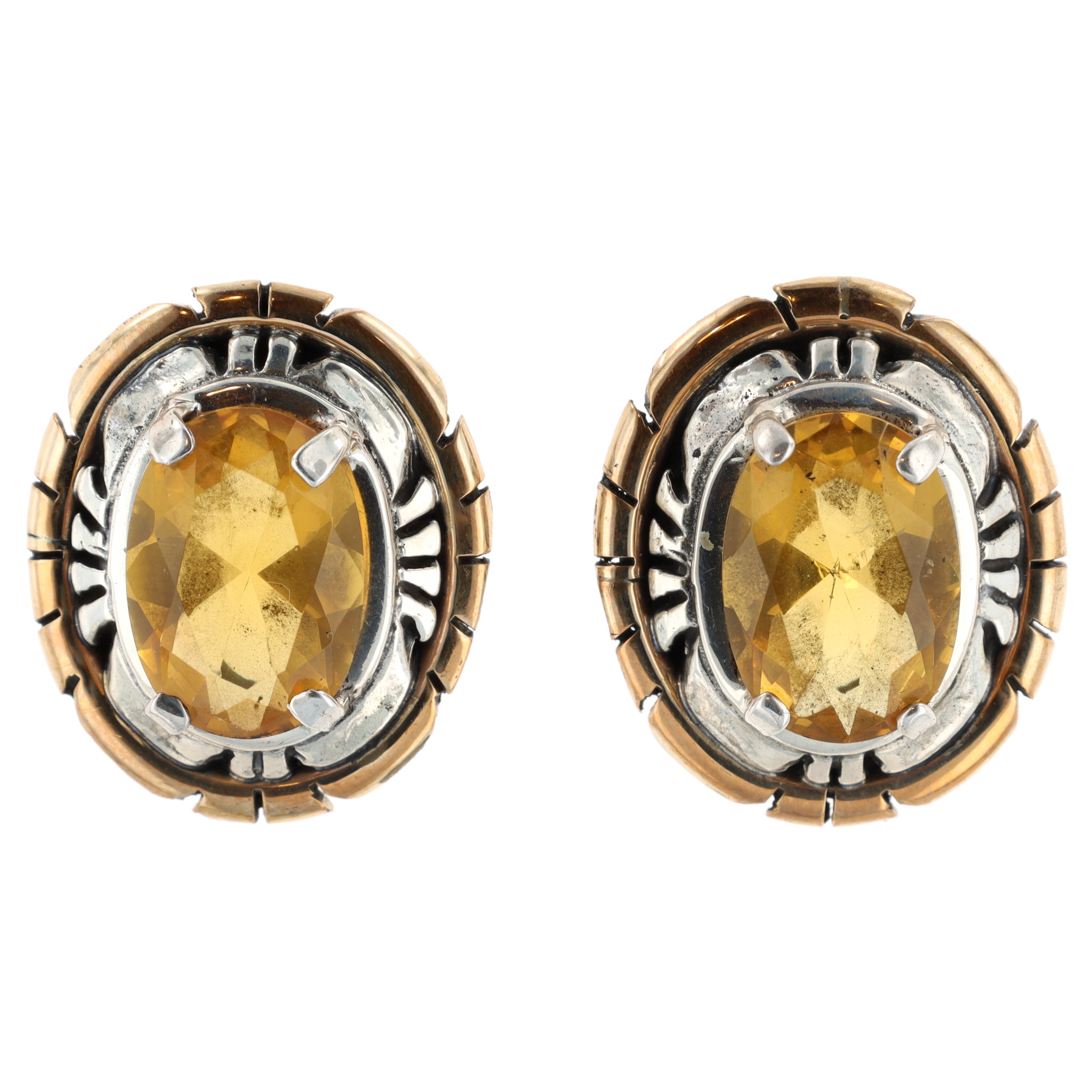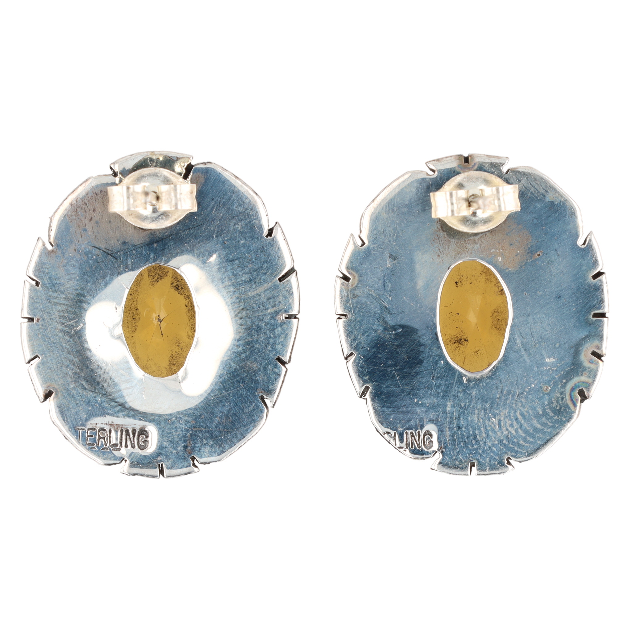 Russell Sam Navajo Sterling Citrine Earrings 13g