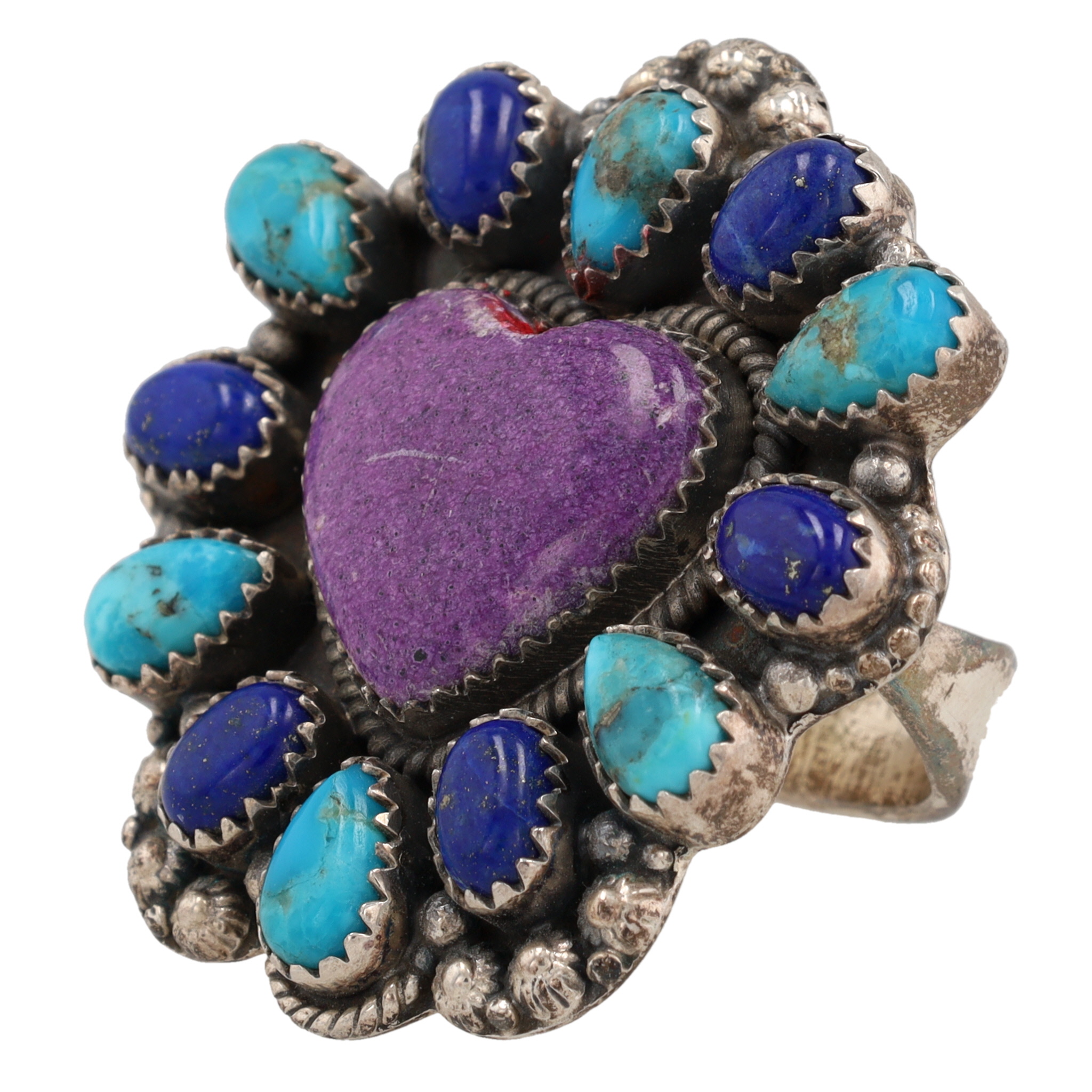 HaDa Collection Sterling Multi Stone Heart Adjustable Ring 24g