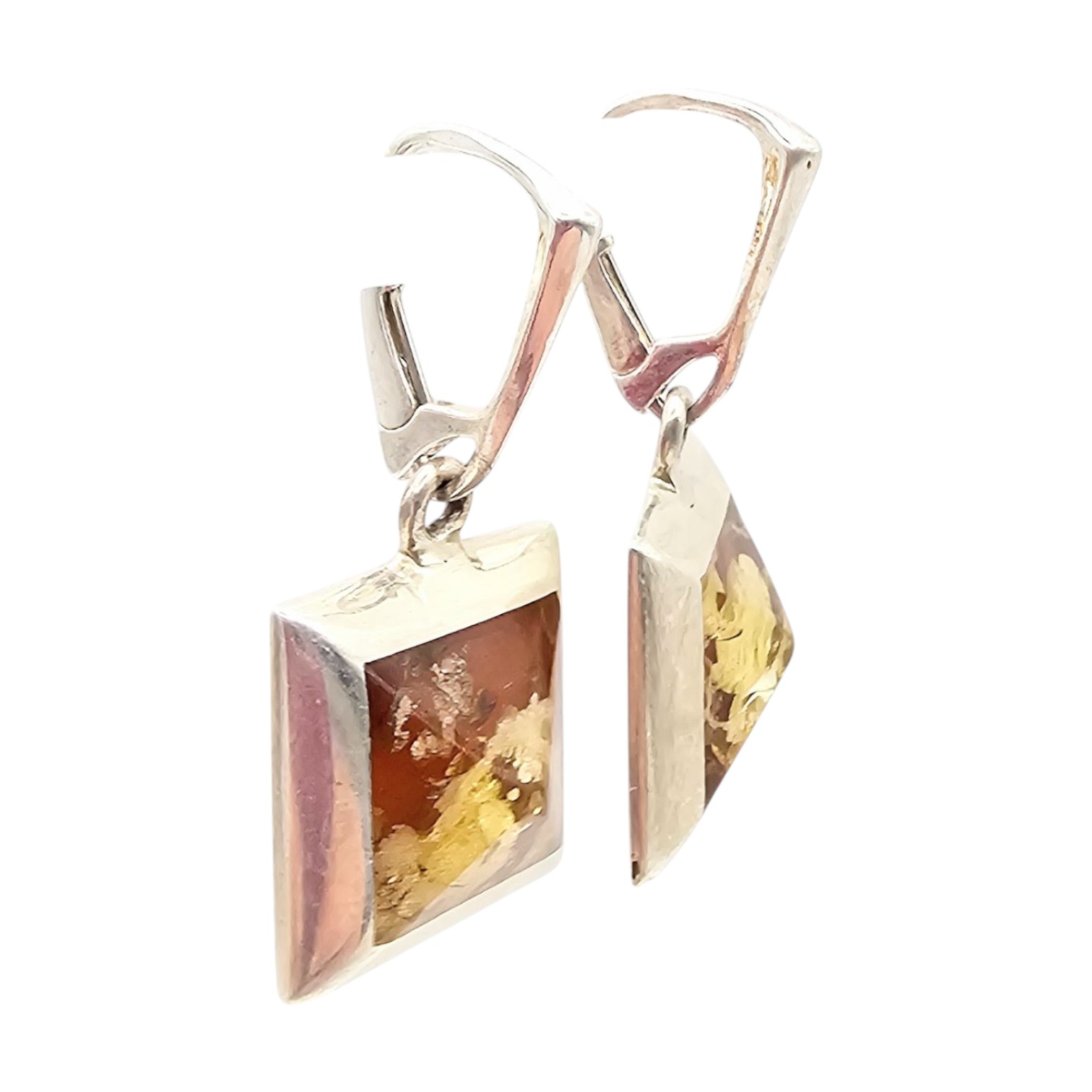 New Polish Amber Sterling Silver Dangle Earrings 8.4 G