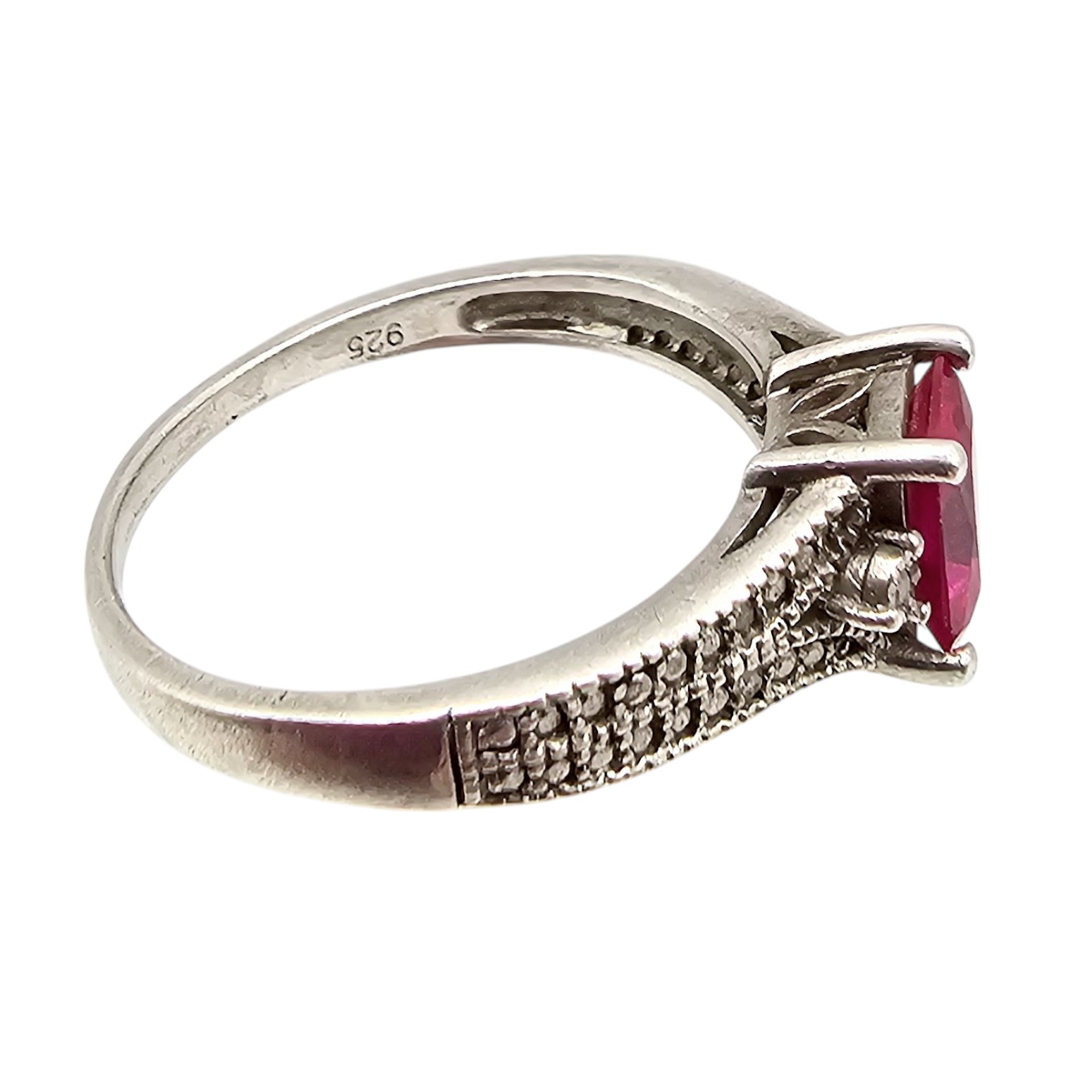 HOU Ruby Diamond Sterling Silver Cocktail Ring Size 7.75 2.7 G