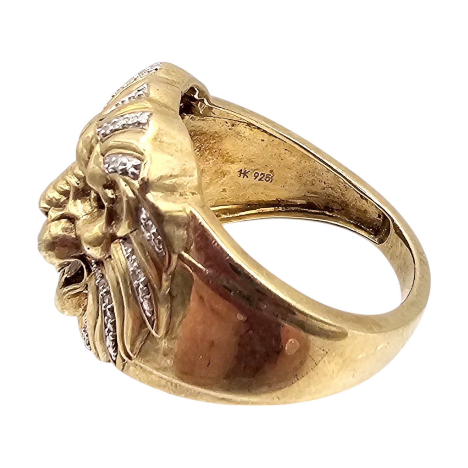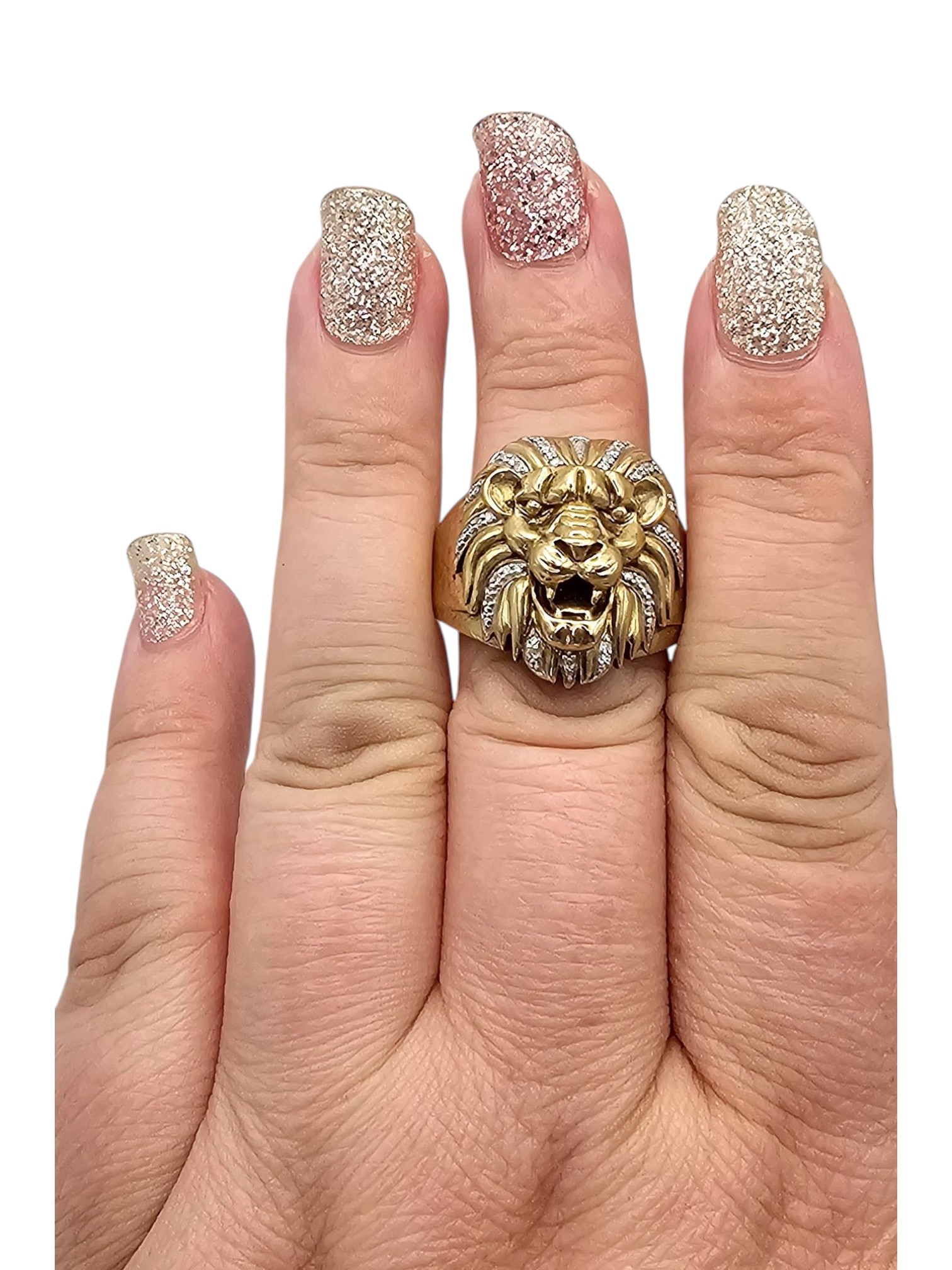 Signed 1K Diamond Gold Over Sterling Silver Lion Ring Size 9.25 10 G
