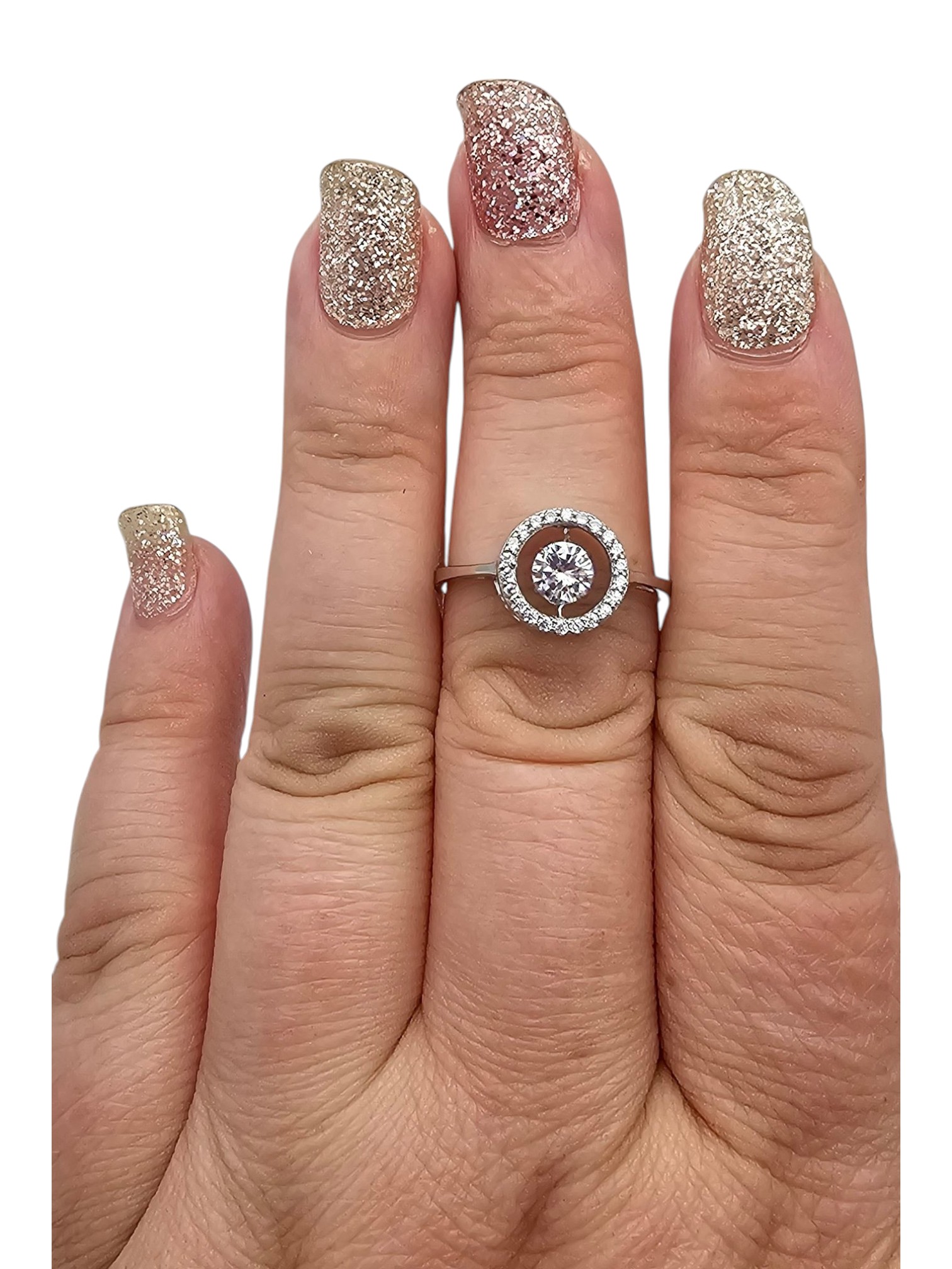 Rhinestone Sterling Silver Floating Ring Size 8.5 2.1 G