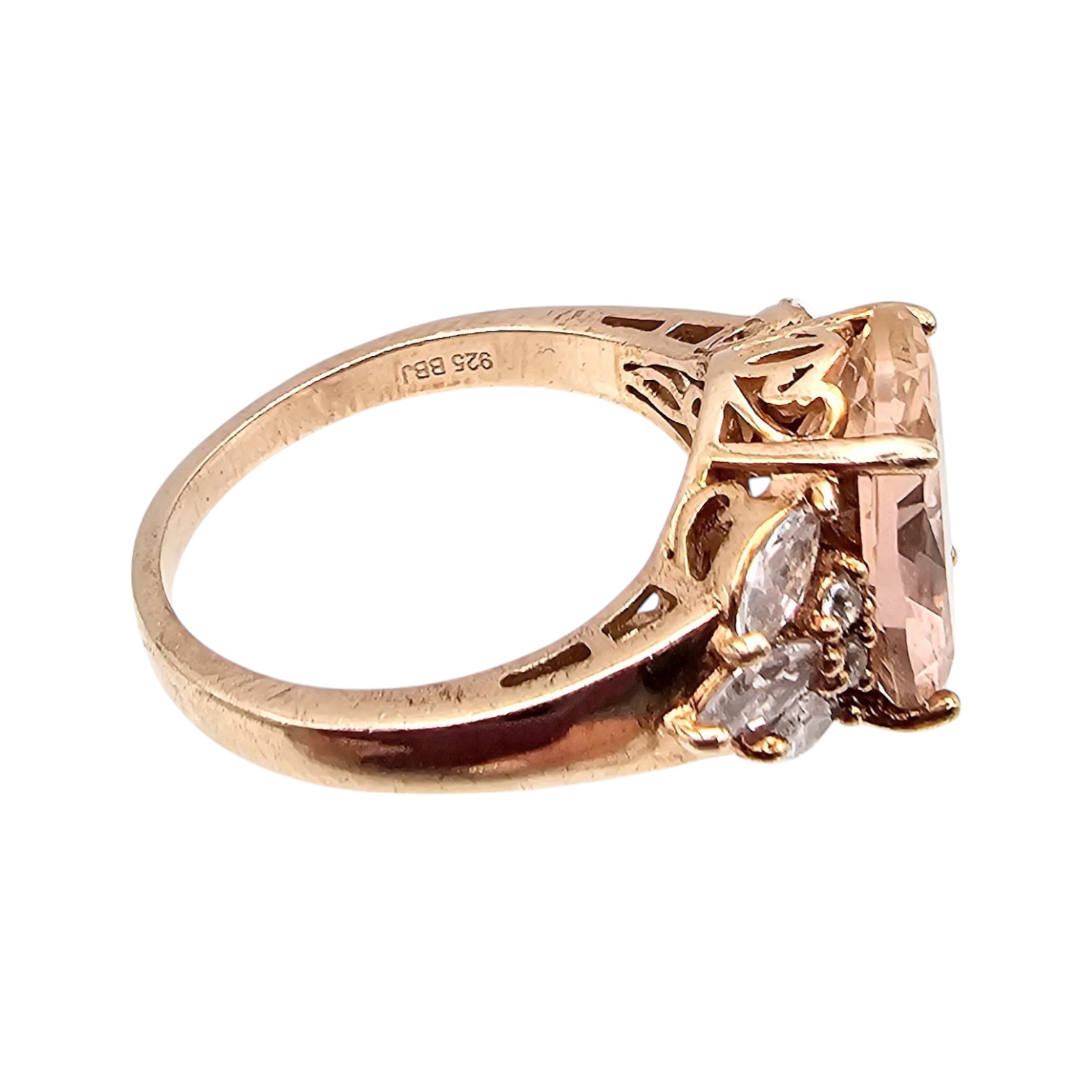 BBJ Rhinestone Rose Gold Over Sterling Silver Cocktail Ring Size 9.5 6.6 G