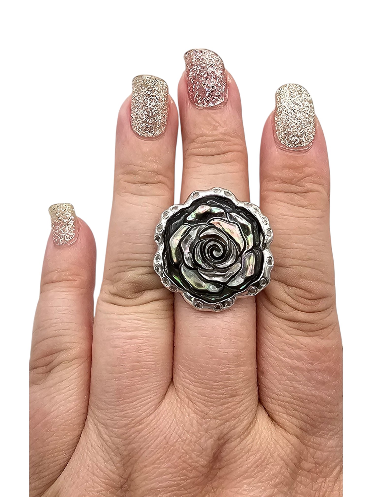 WW Abalone Sterling Silver Flower Ring Size 8.5 11.8 G