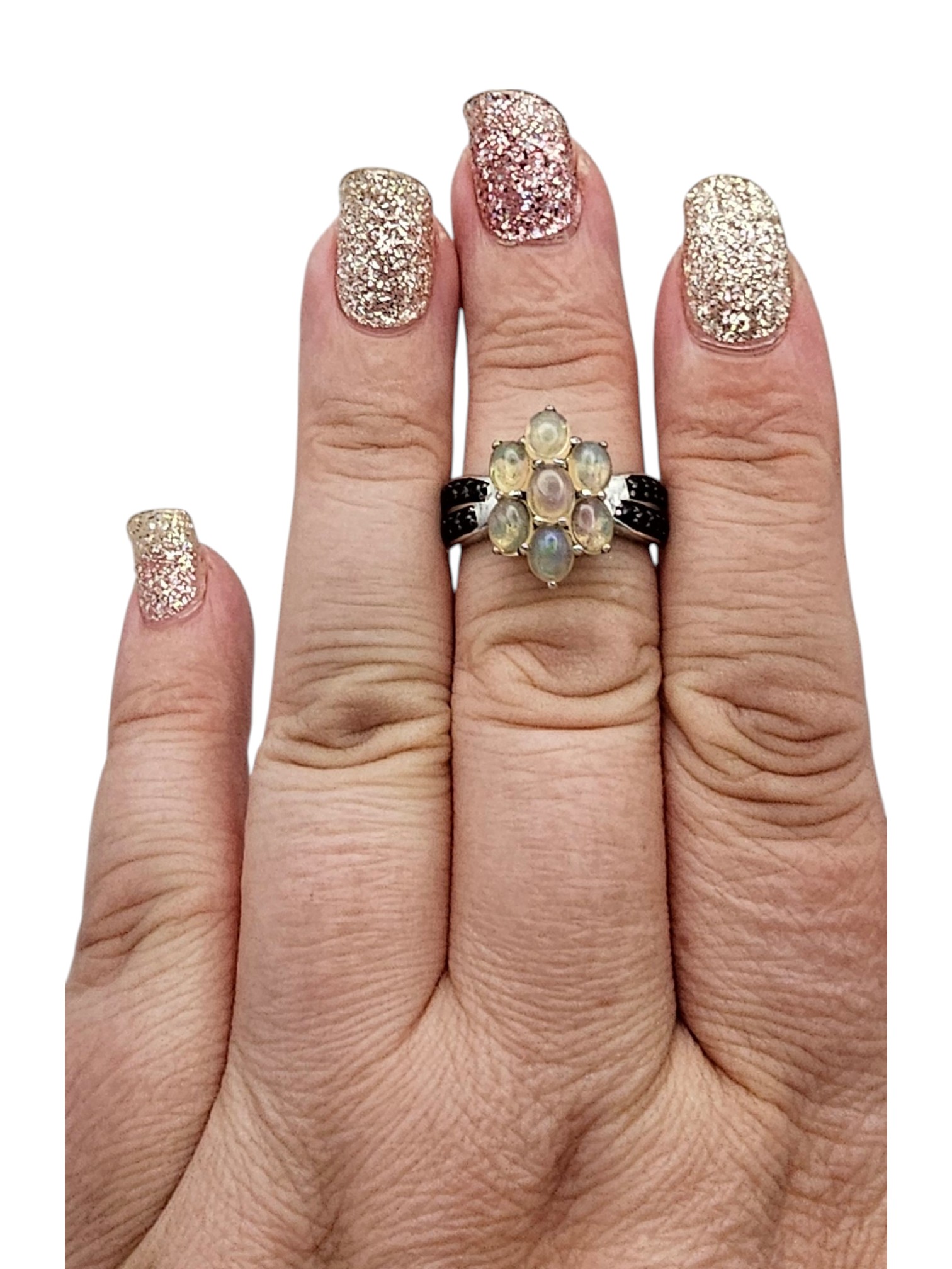 Y Opal Rhinestone Sterling Silver Cocktail Ring Size 6.75 3.8 G