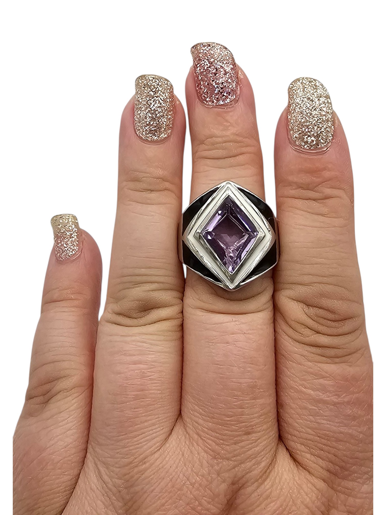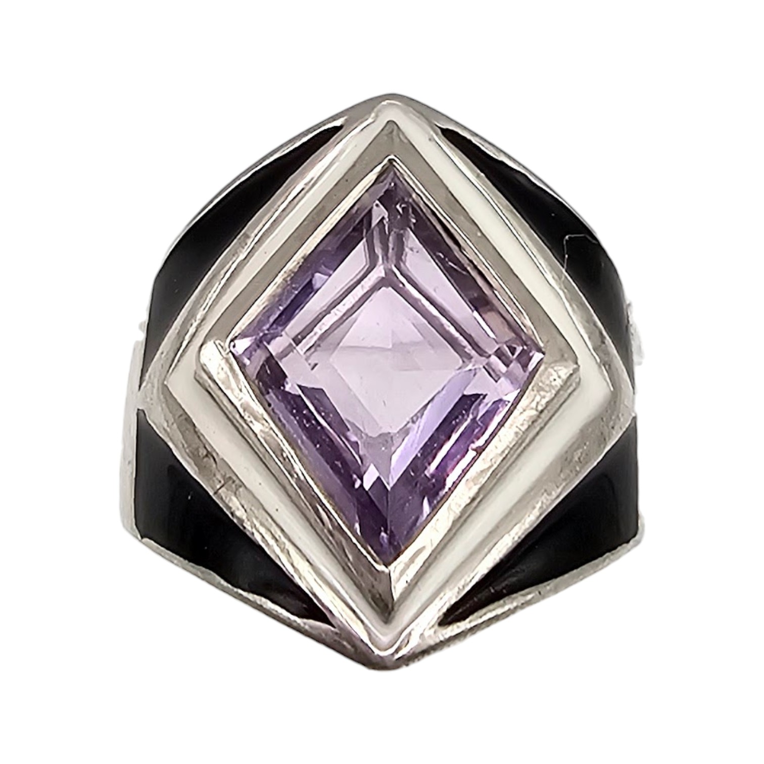 GP Amethyst Enamel Sterling Silver Ring Size 7.5 10.2 G