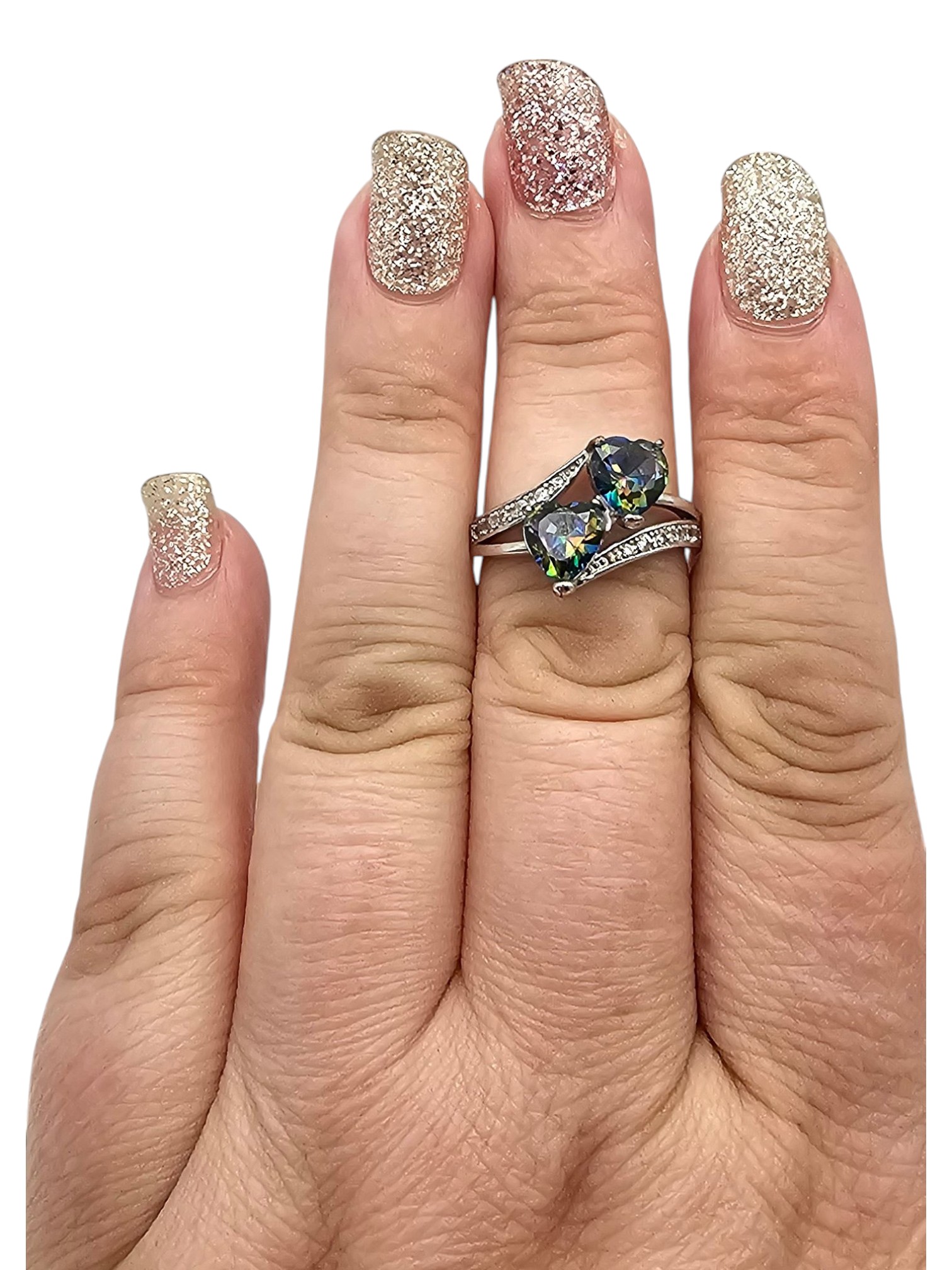 Watermelon Rhinestone Sterling Silver Cocktail Ring Size 8 3 G