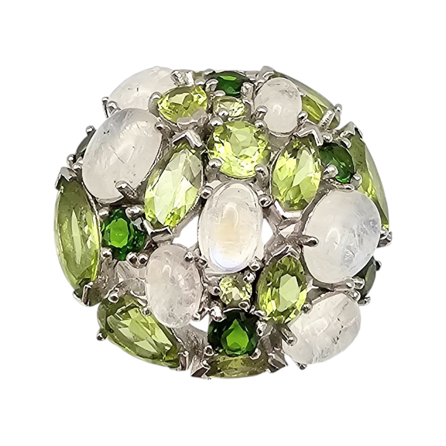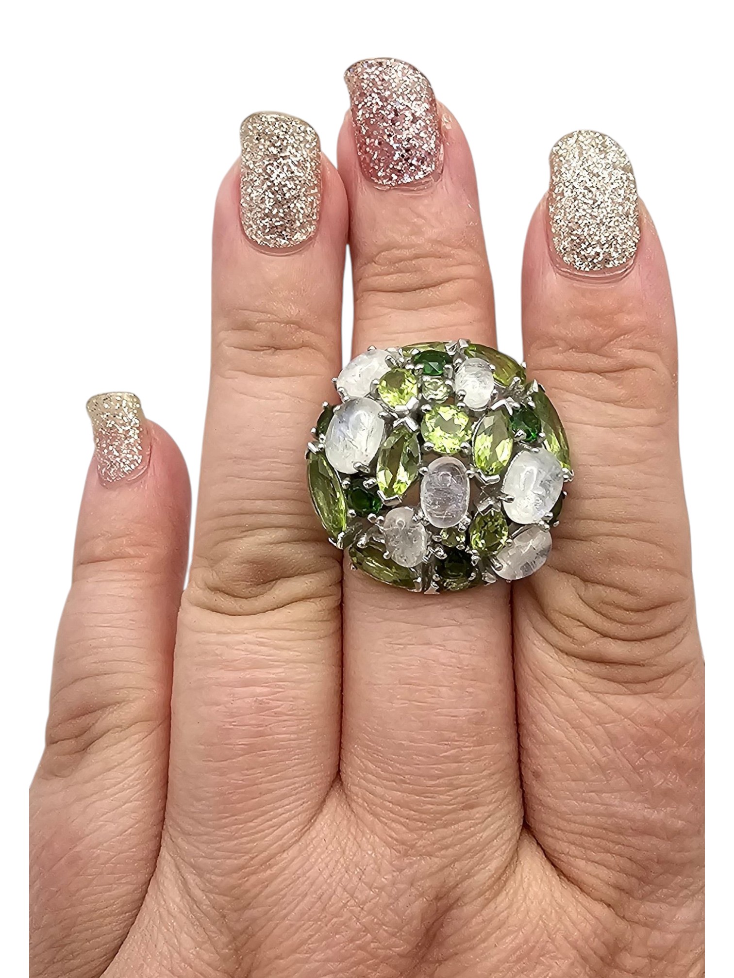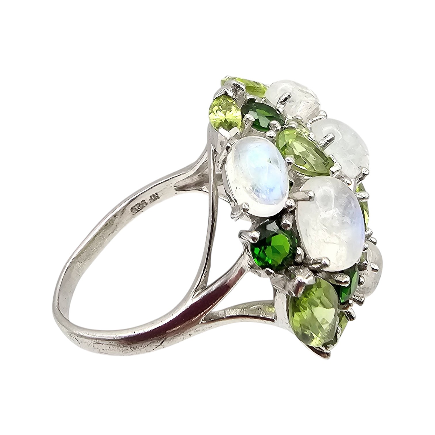NF Moonstone Peridot Emerald Sterling Silver Ring Size 9 10.4 G Bent band