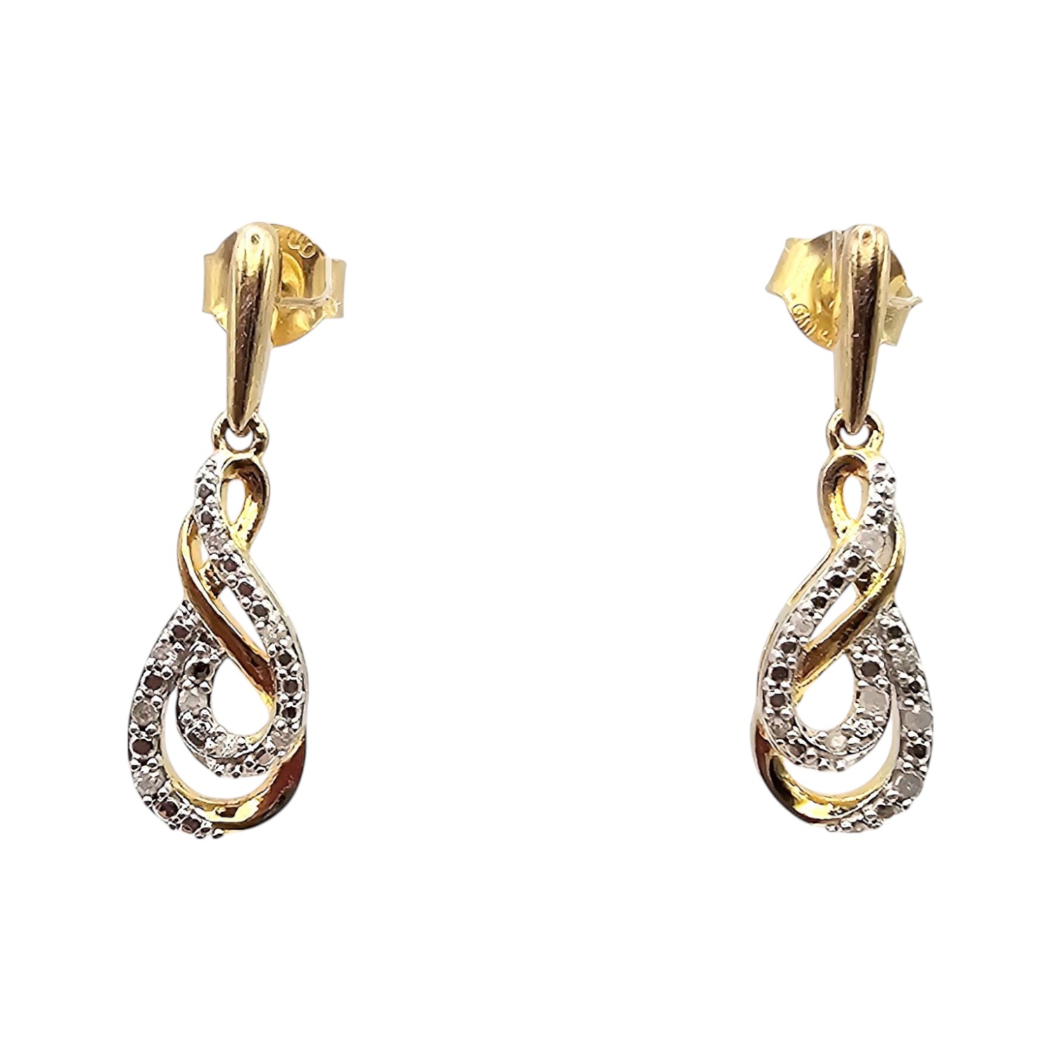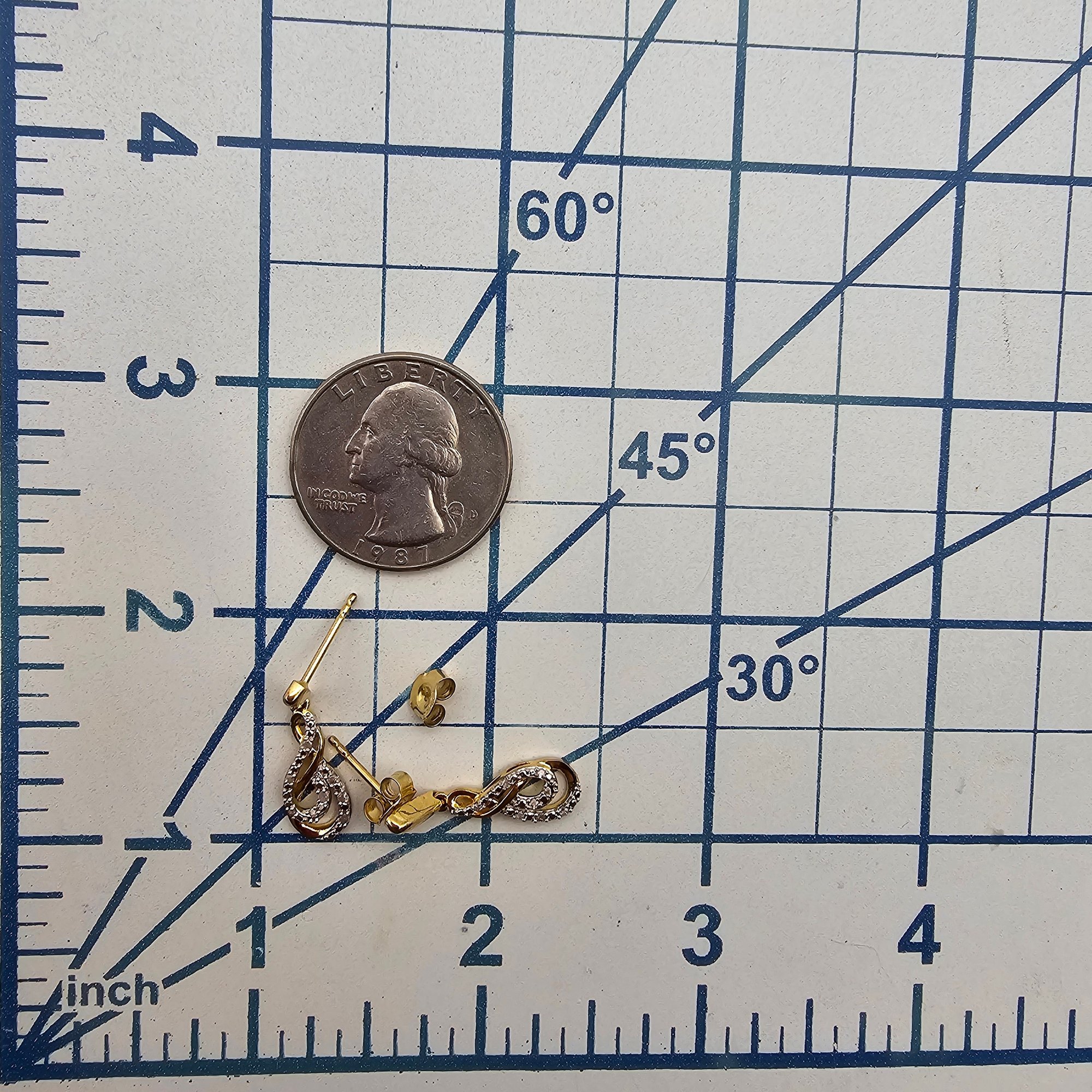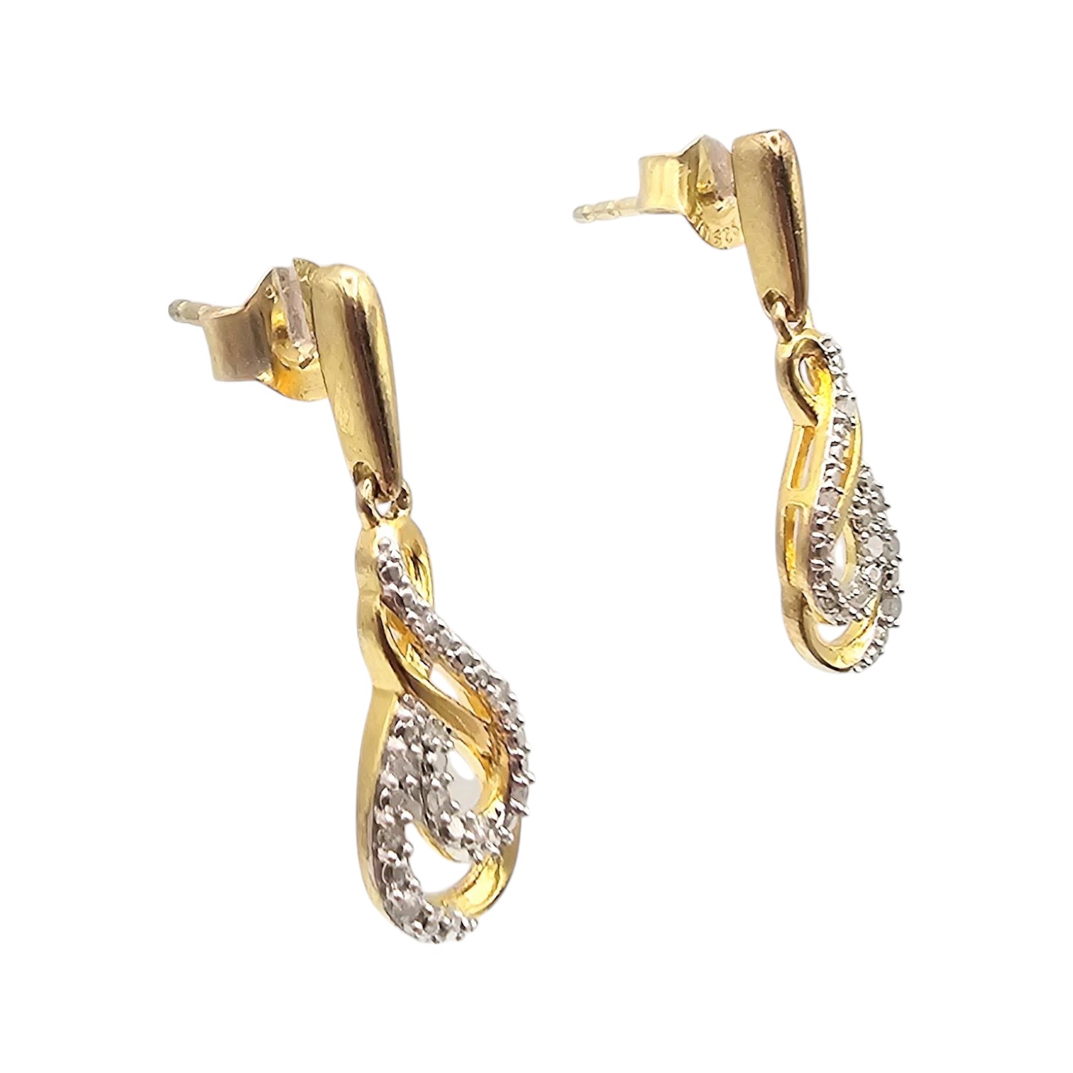 UN Diamond Gold Over Sterling Silver Dangle Earrings 2.5 G