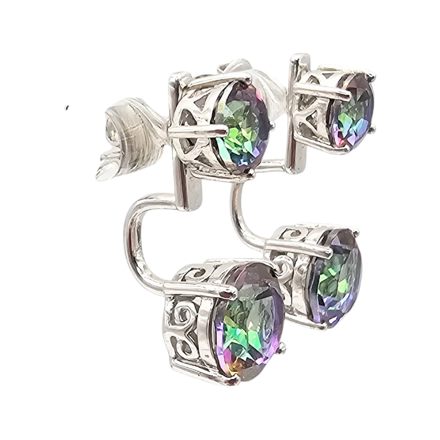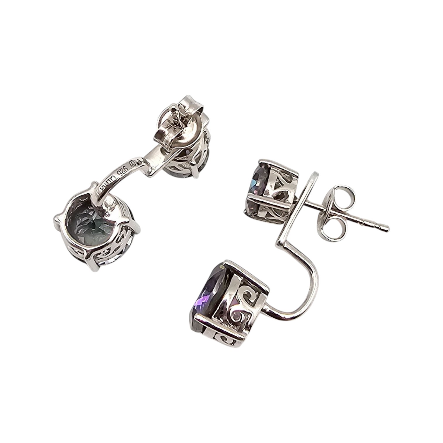 Signed Mystic Topaz Sterling Silver Dangle Earrings 4.3 G