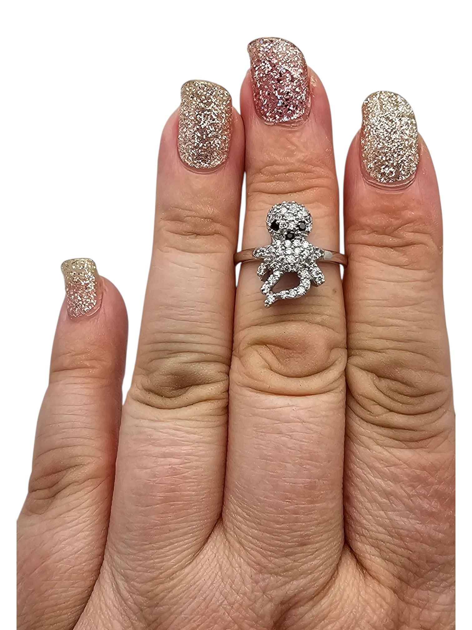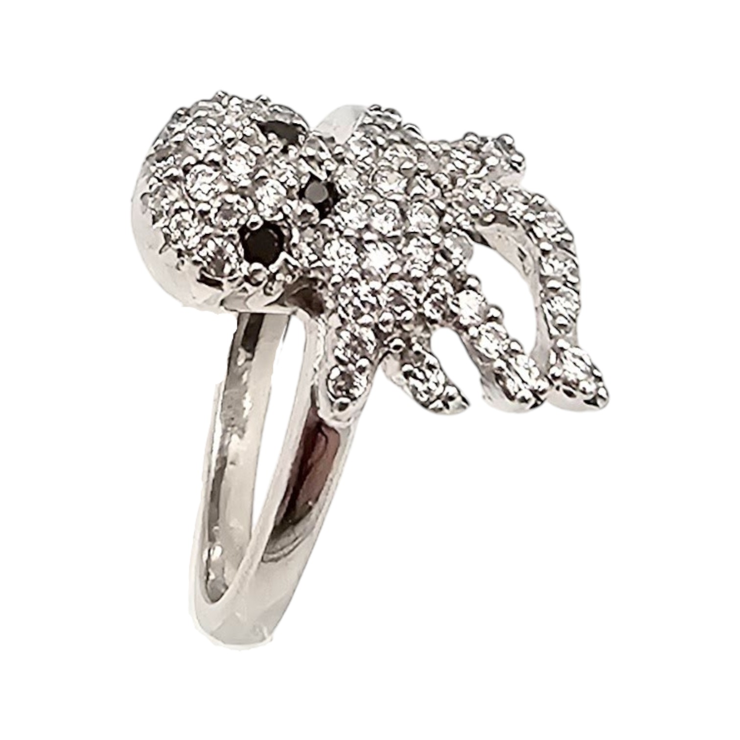 N Rhinestone Sterling Silver Octopus Ring Size 6.75 3.3 G