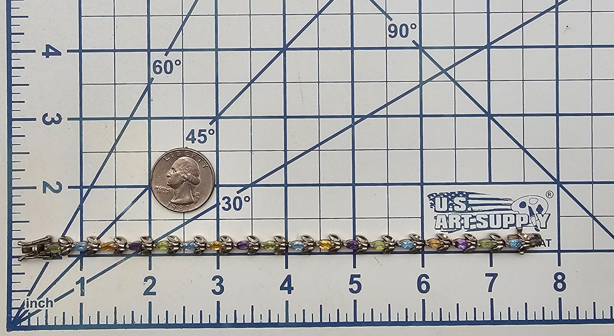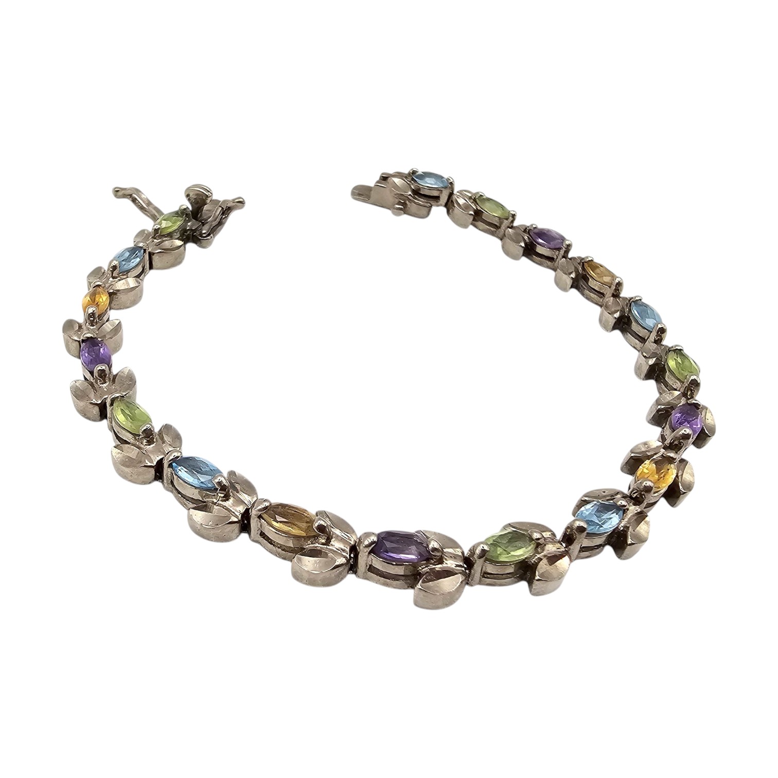 CI Topaz Citrine Peridot Amethyst Sterling Silver Tennis Bracelet 15.1 G