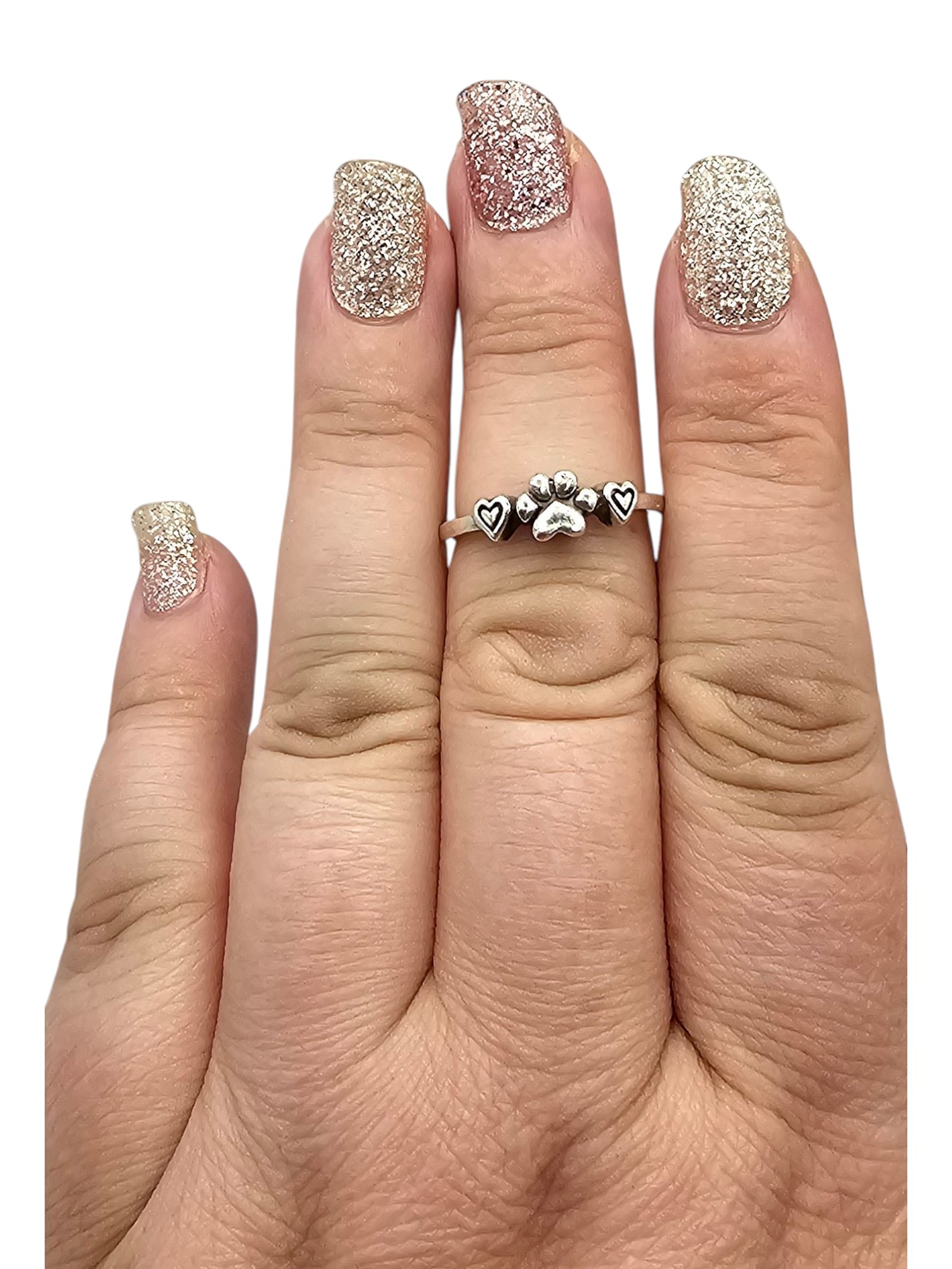 Sterling Silver Paw Print Ring Size 2.8 G Bent band