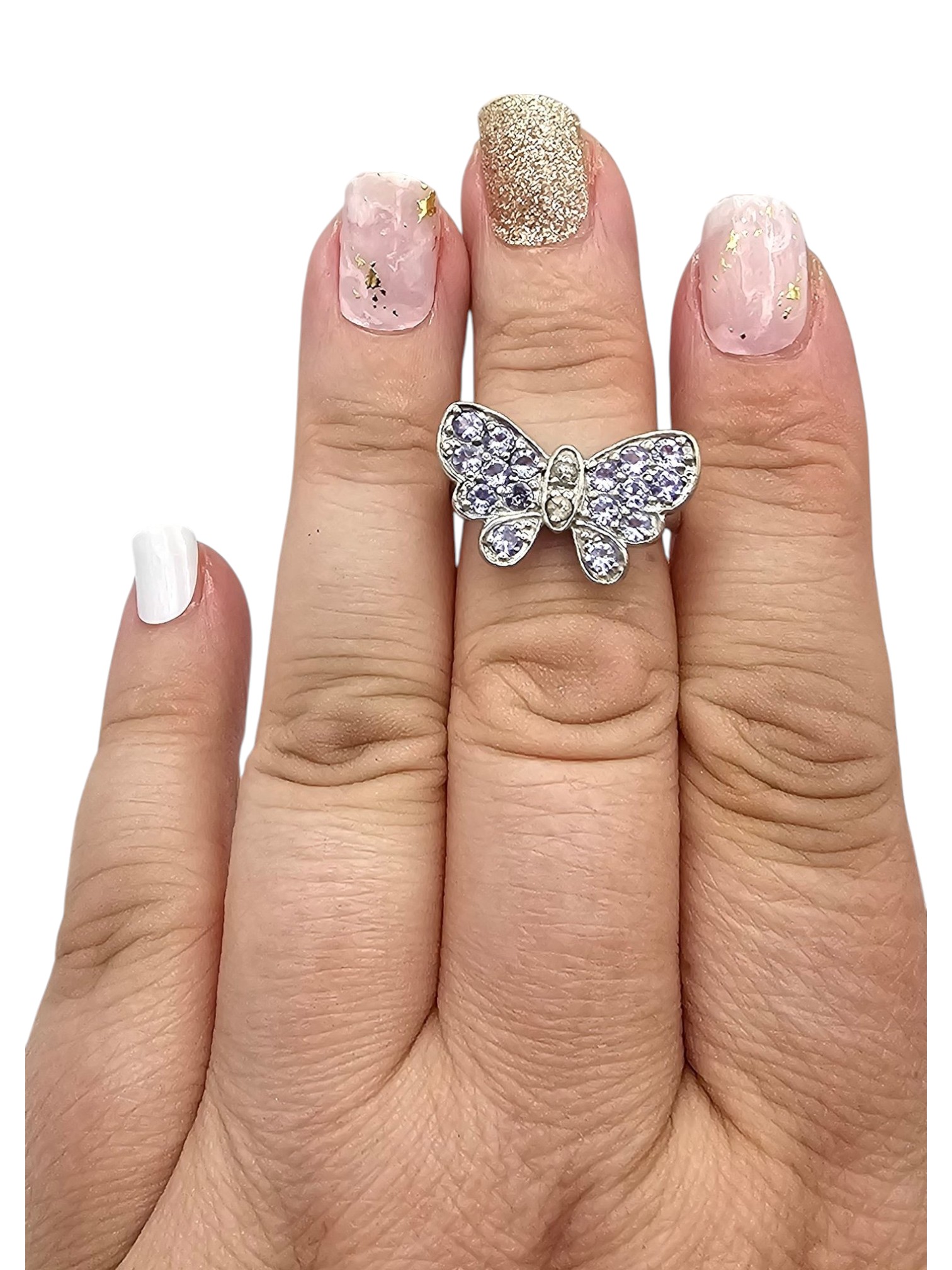 SGF Rhinestone Sterling Silver Butterfly Ring Size 6.5 4 G