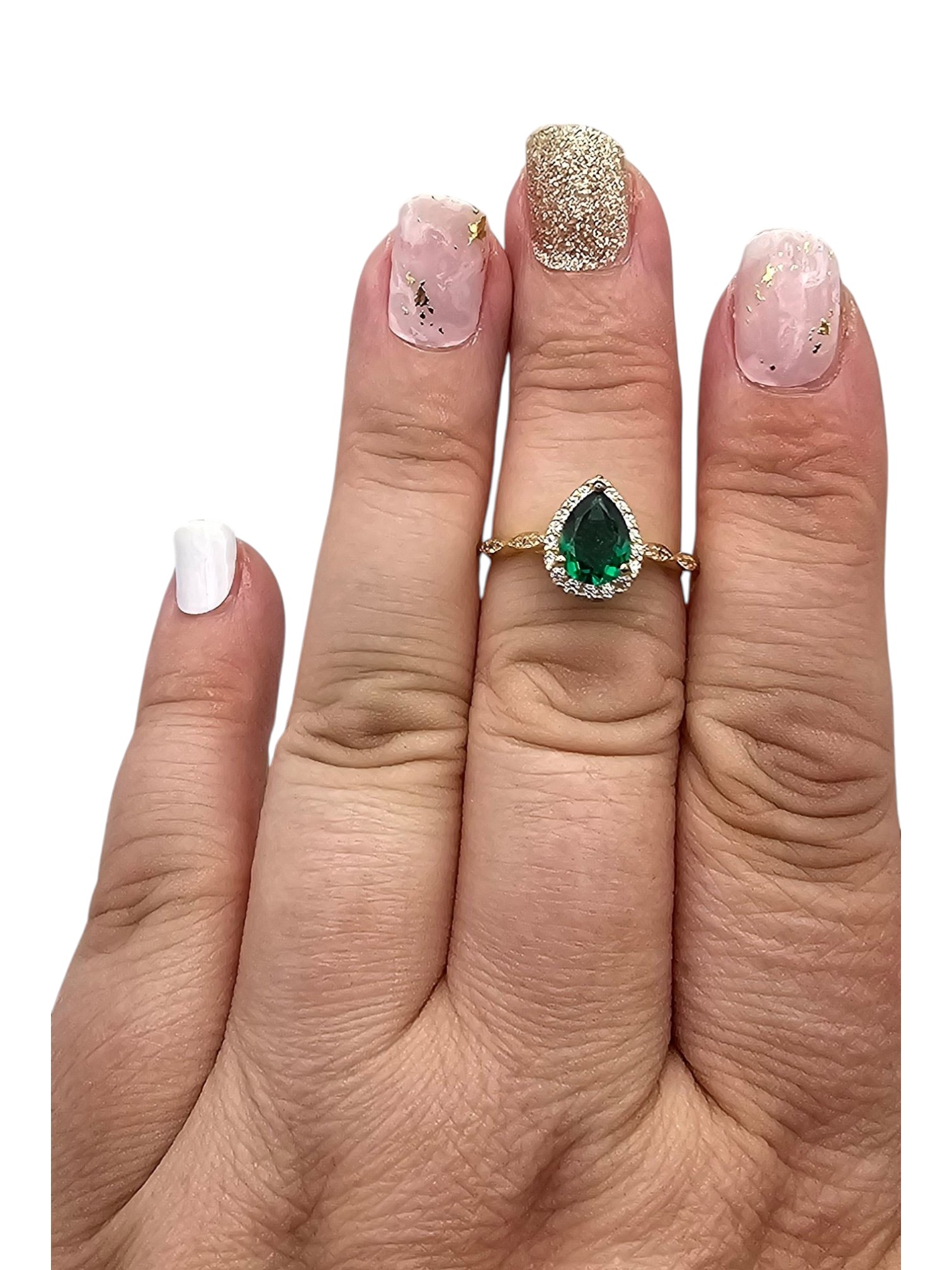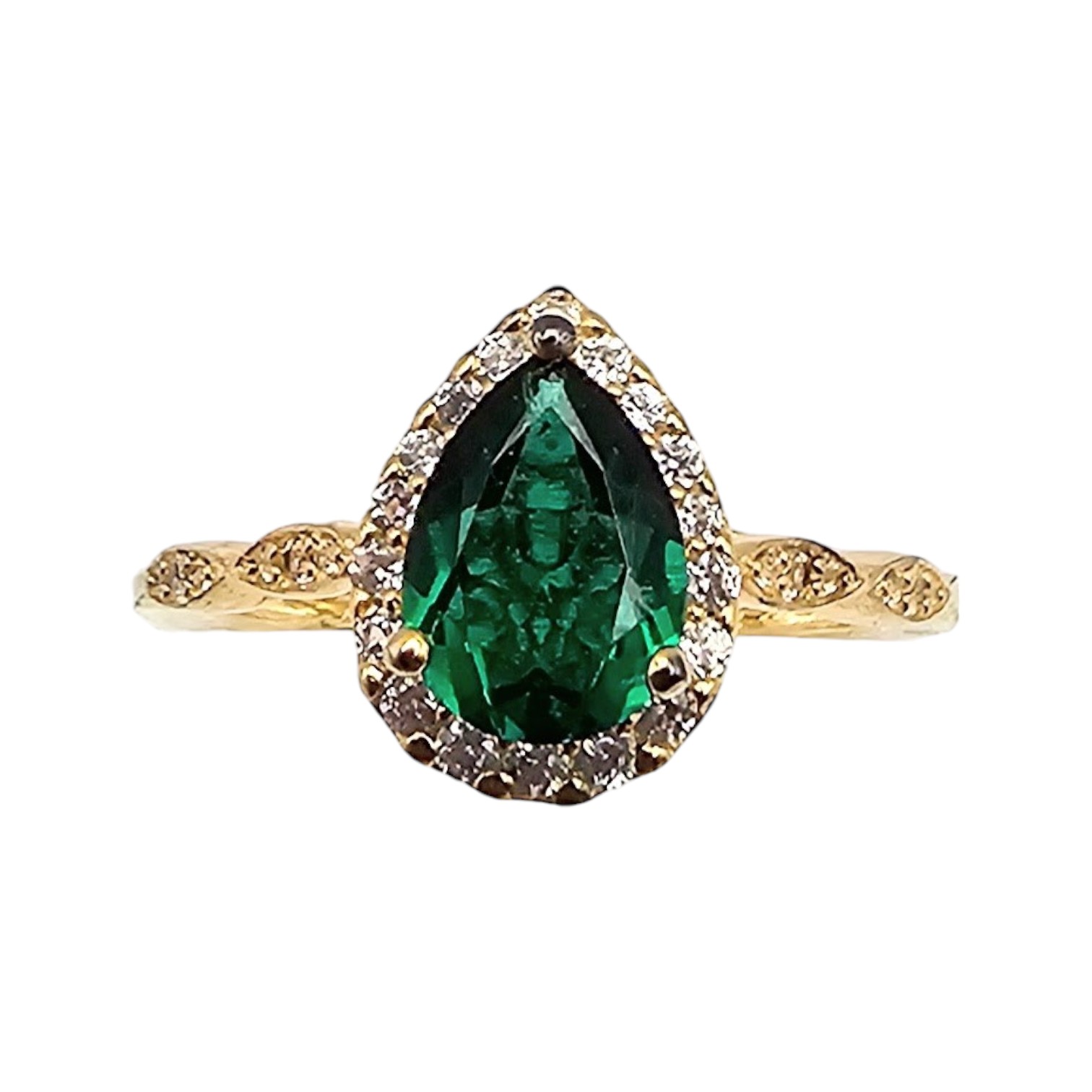 PM Emerald Gold Over Sterling Silver Cocktail Ring Size 6.75 2.1 G