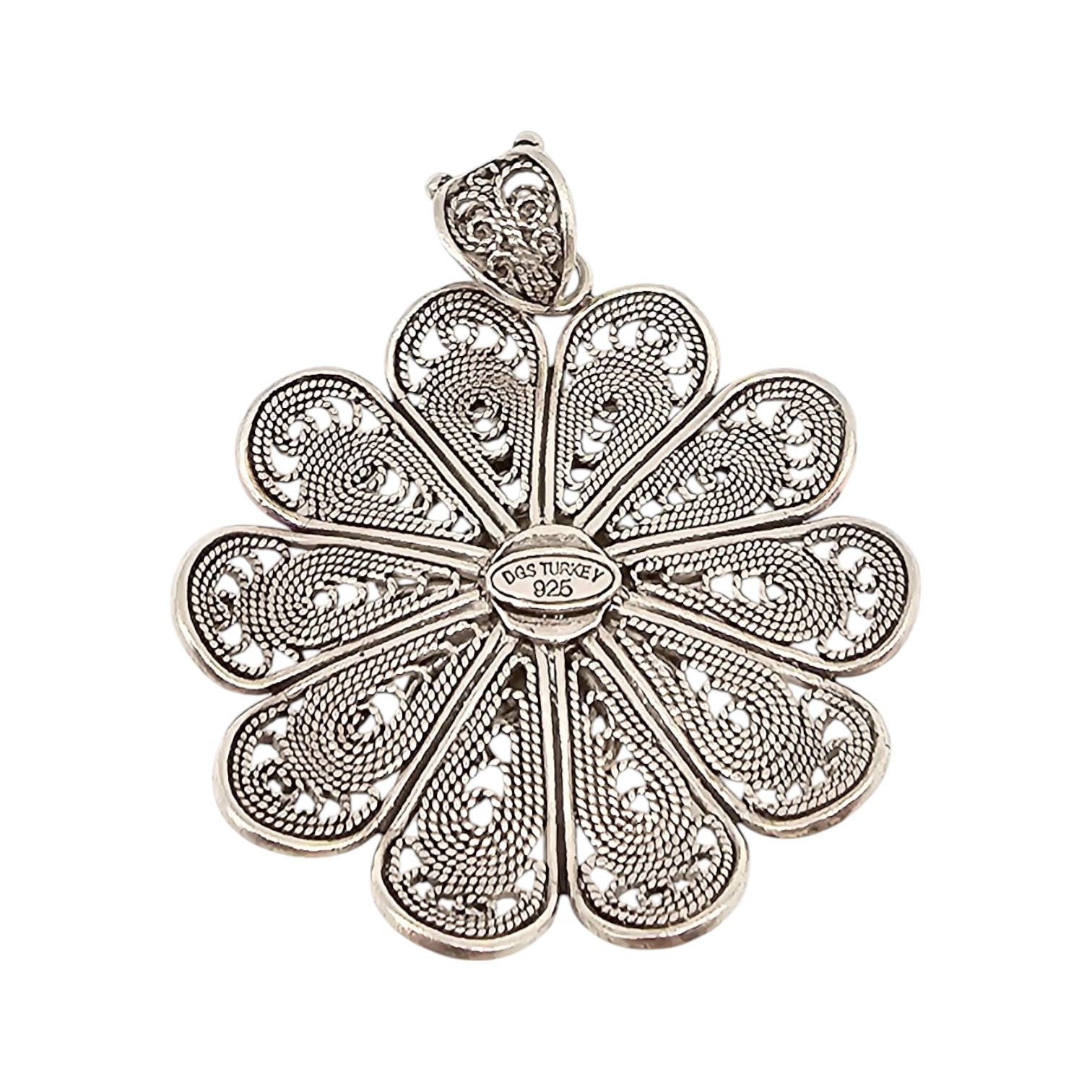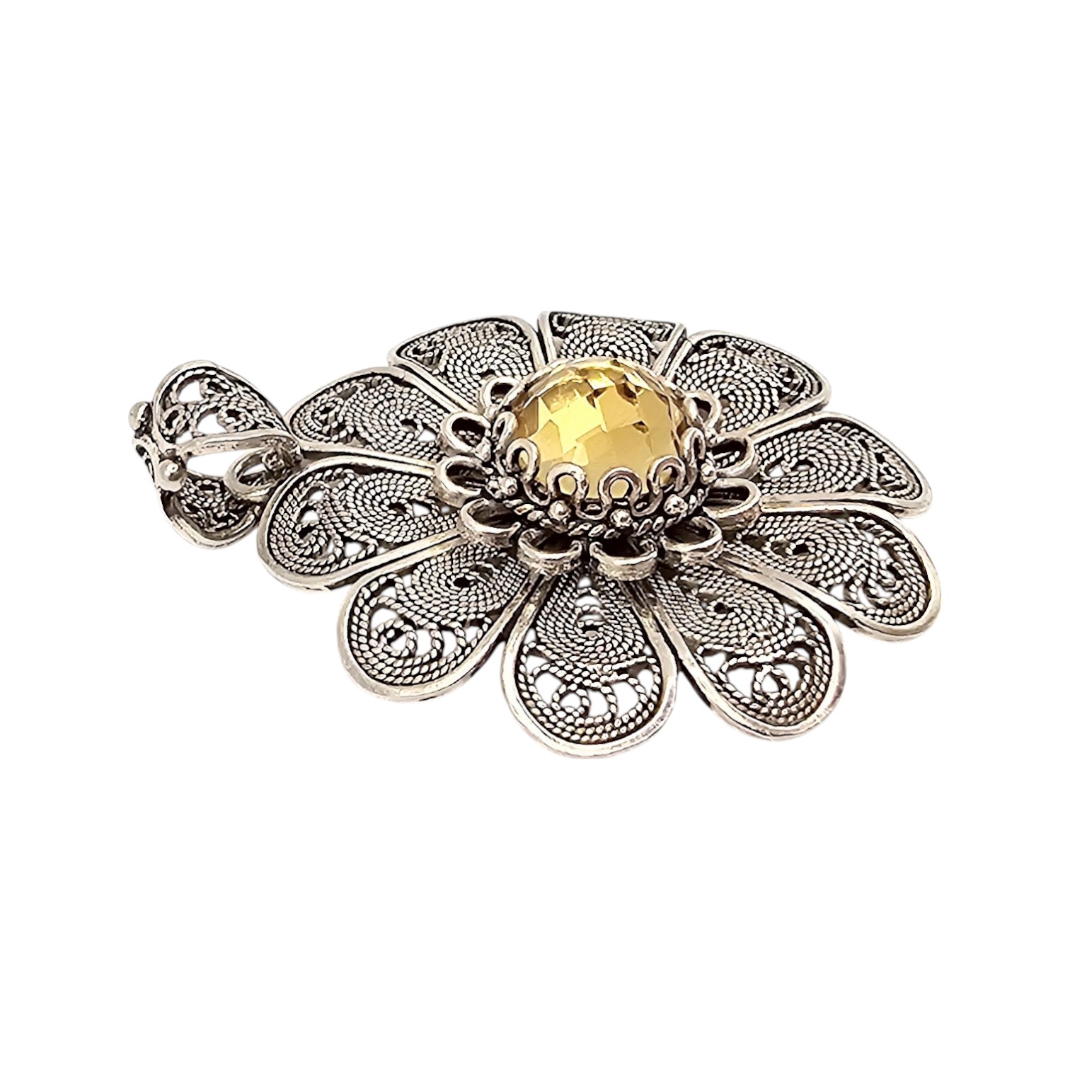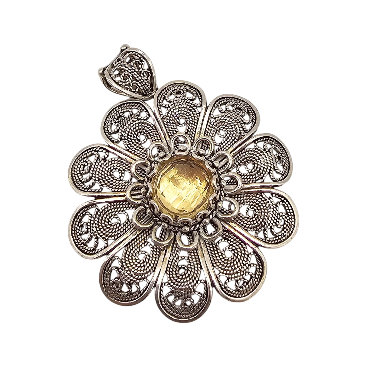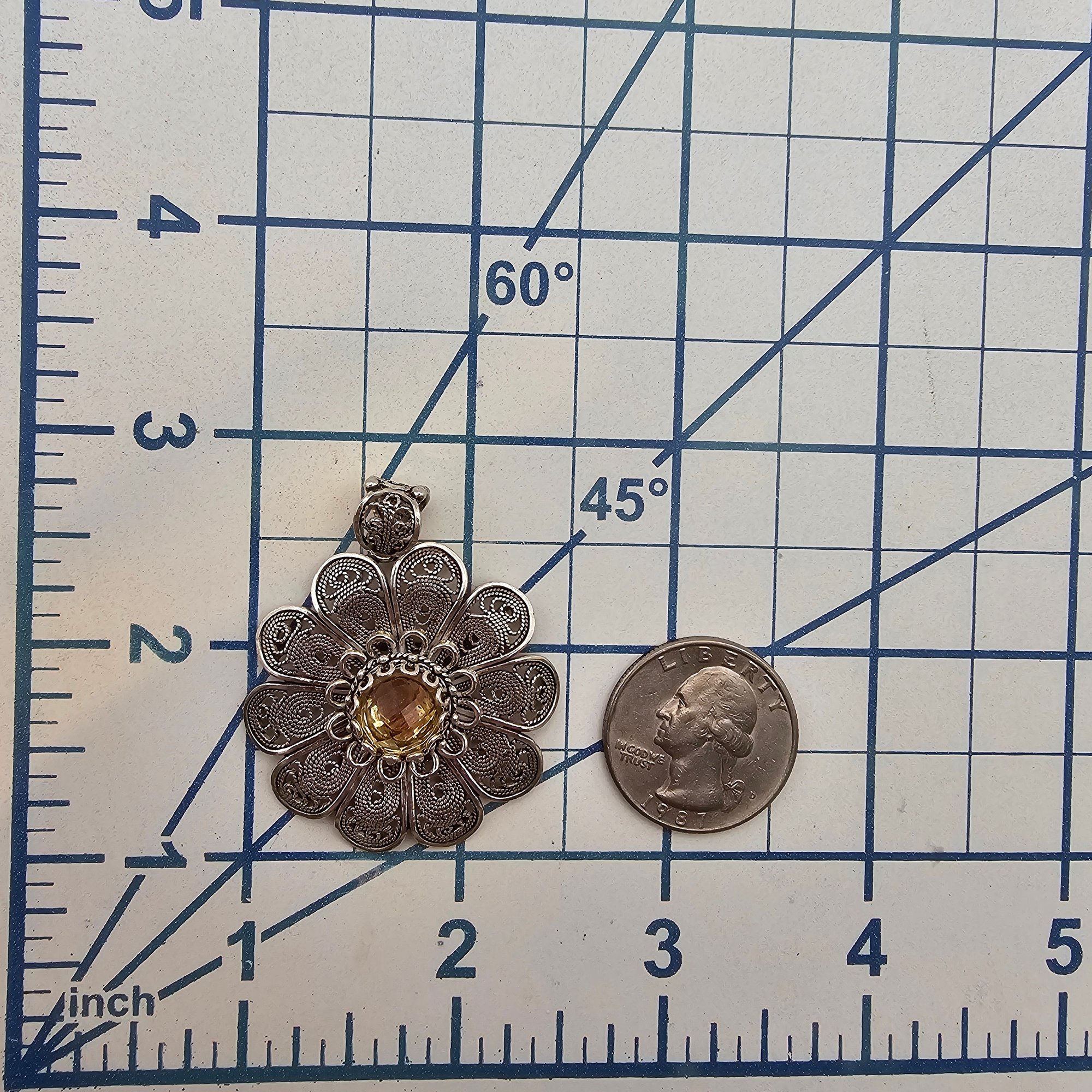 DGS Turkey Citrine Sterling Silver Filigree Flower Pendant 11.9 G