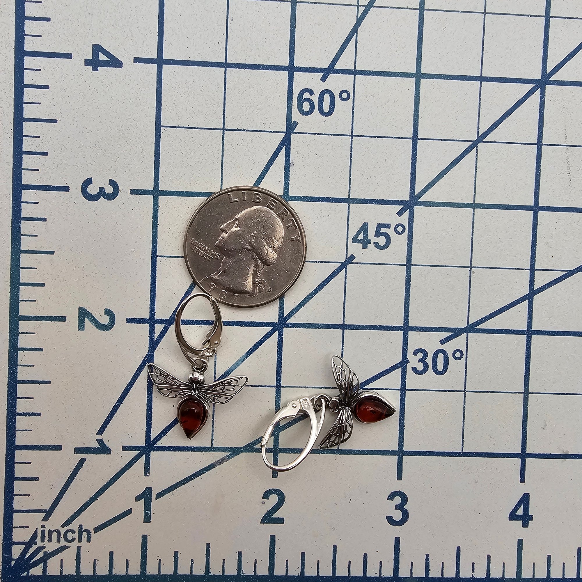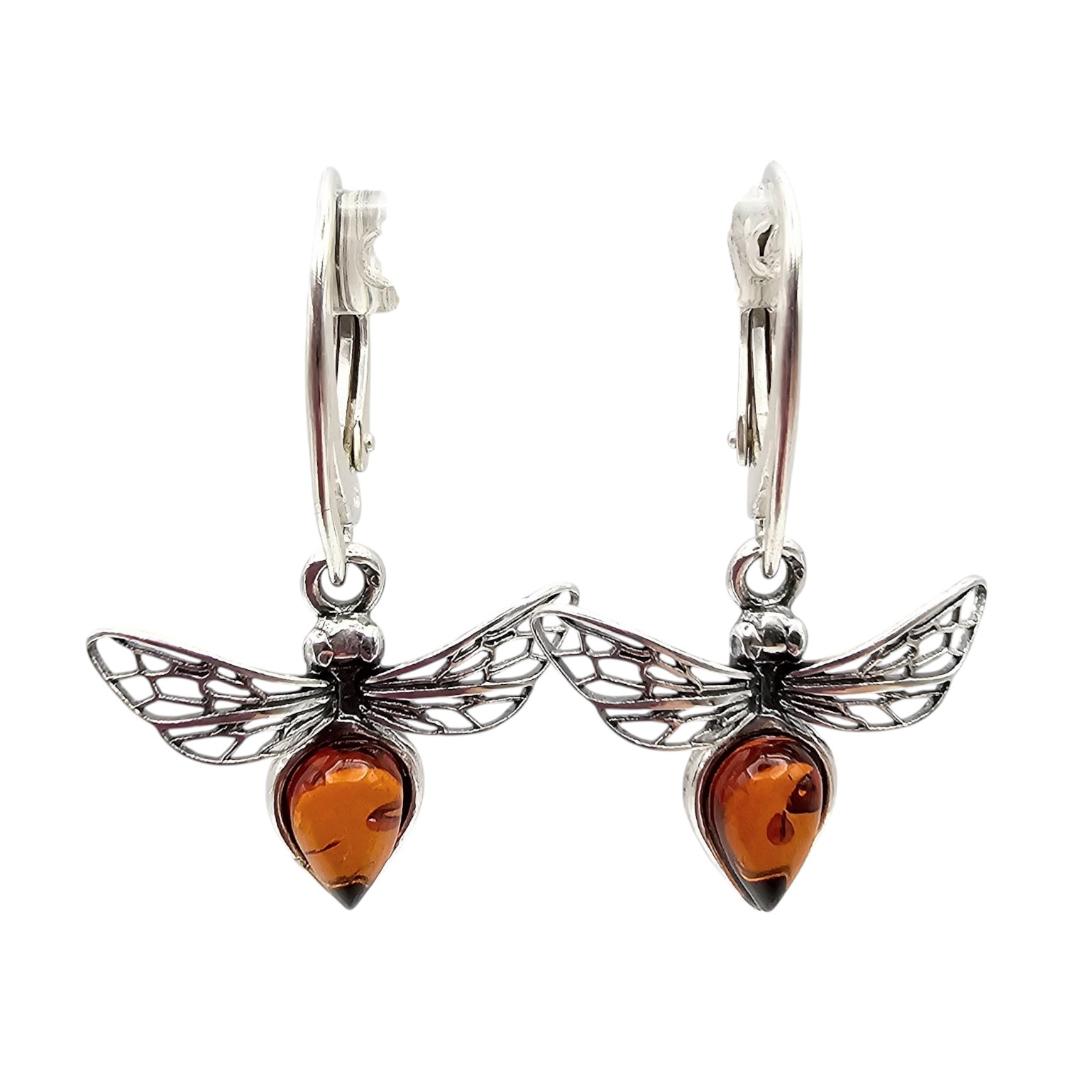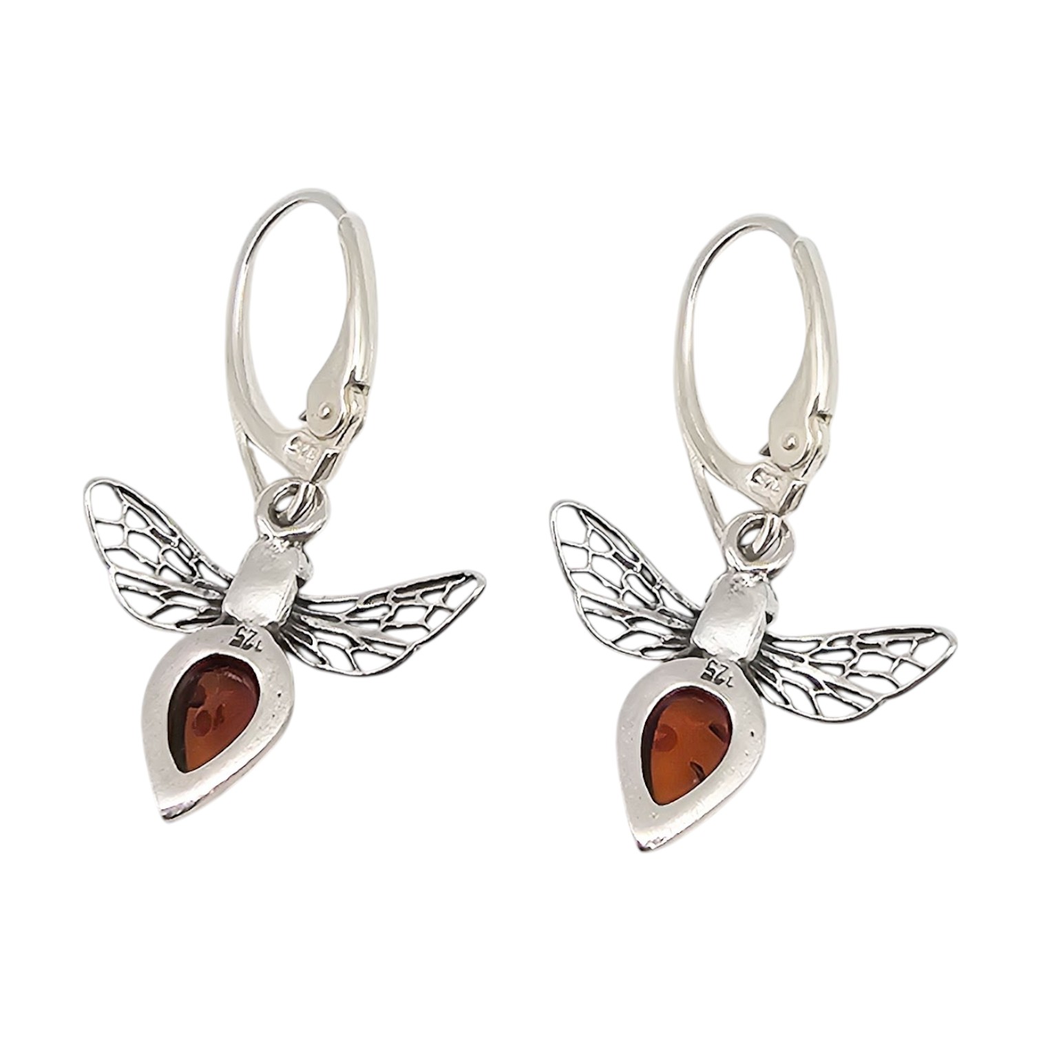 Amber Sterling Silver Bee Dangle Earrings 2.8 G