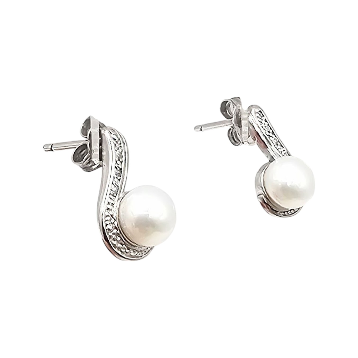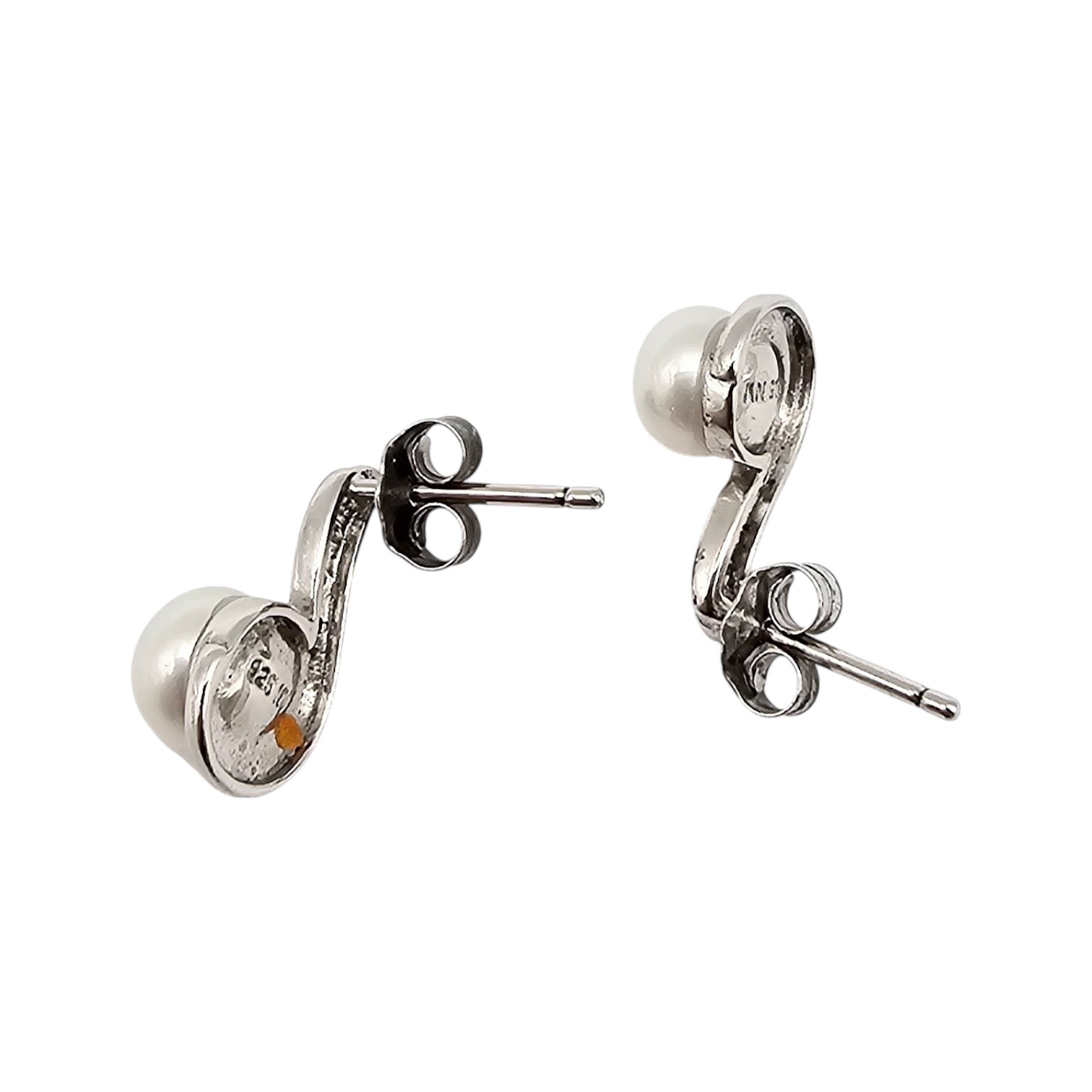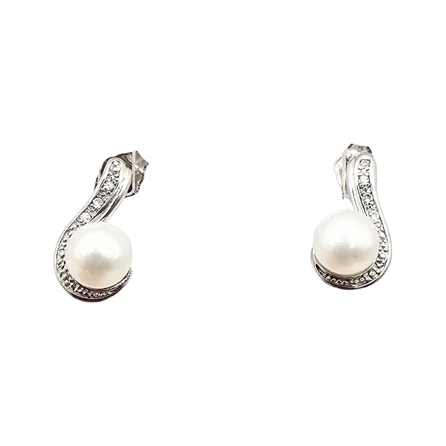 NV Pearl Clear Stone Sterling Silver Earrings 2 G