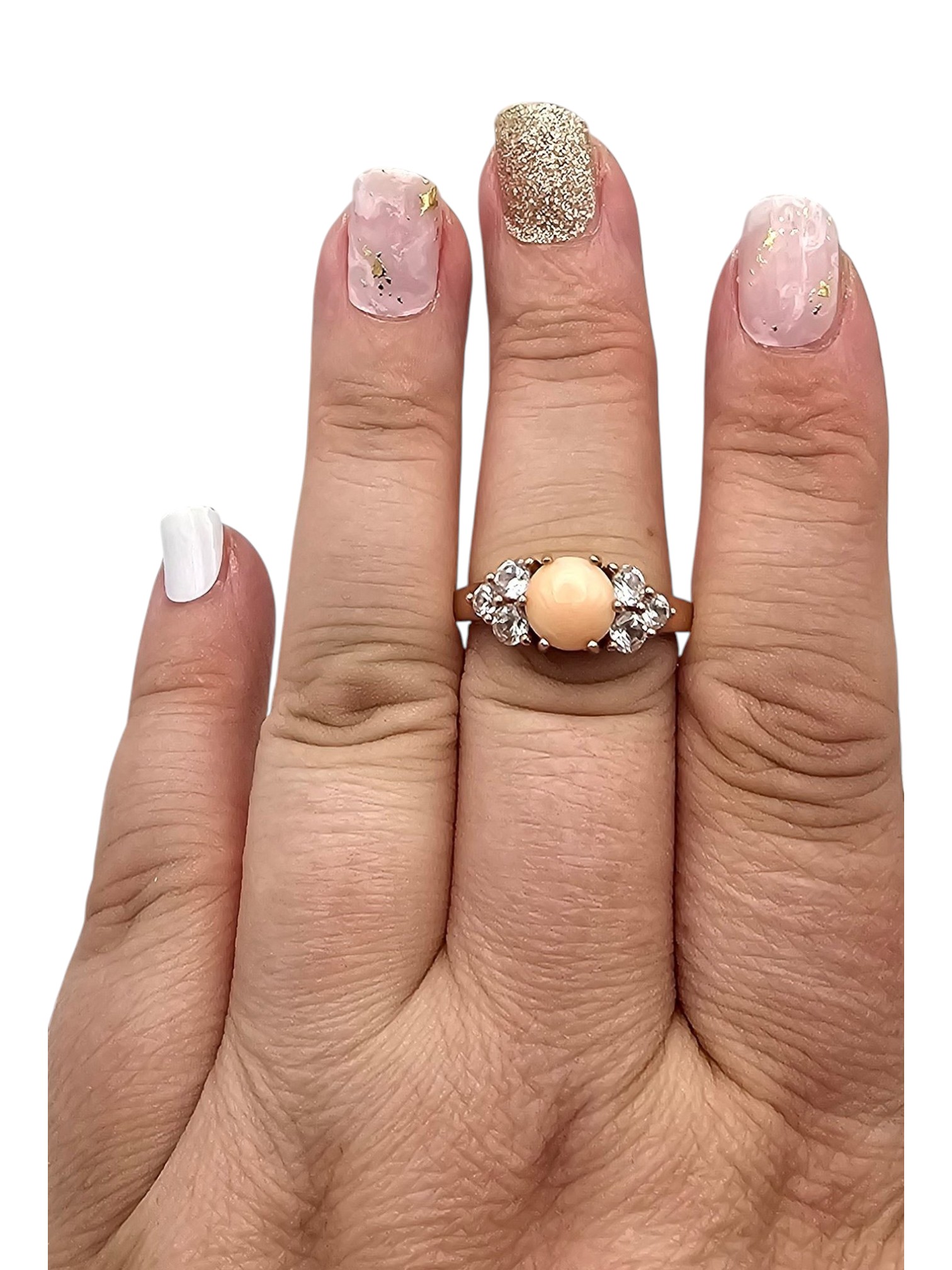 UTC White Topaz Coral Rose Gold Over Sterling Silver Cocktail Ring Size 9.25 4.6 G