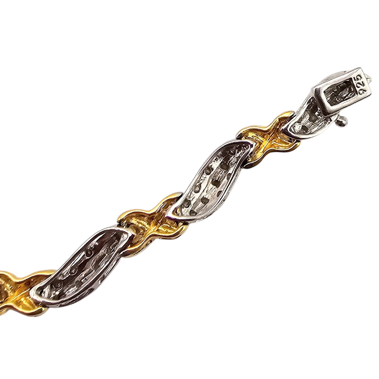 SUN Diamond Sterling Silver Two-Tone Tennis Bracelet 10.4 G