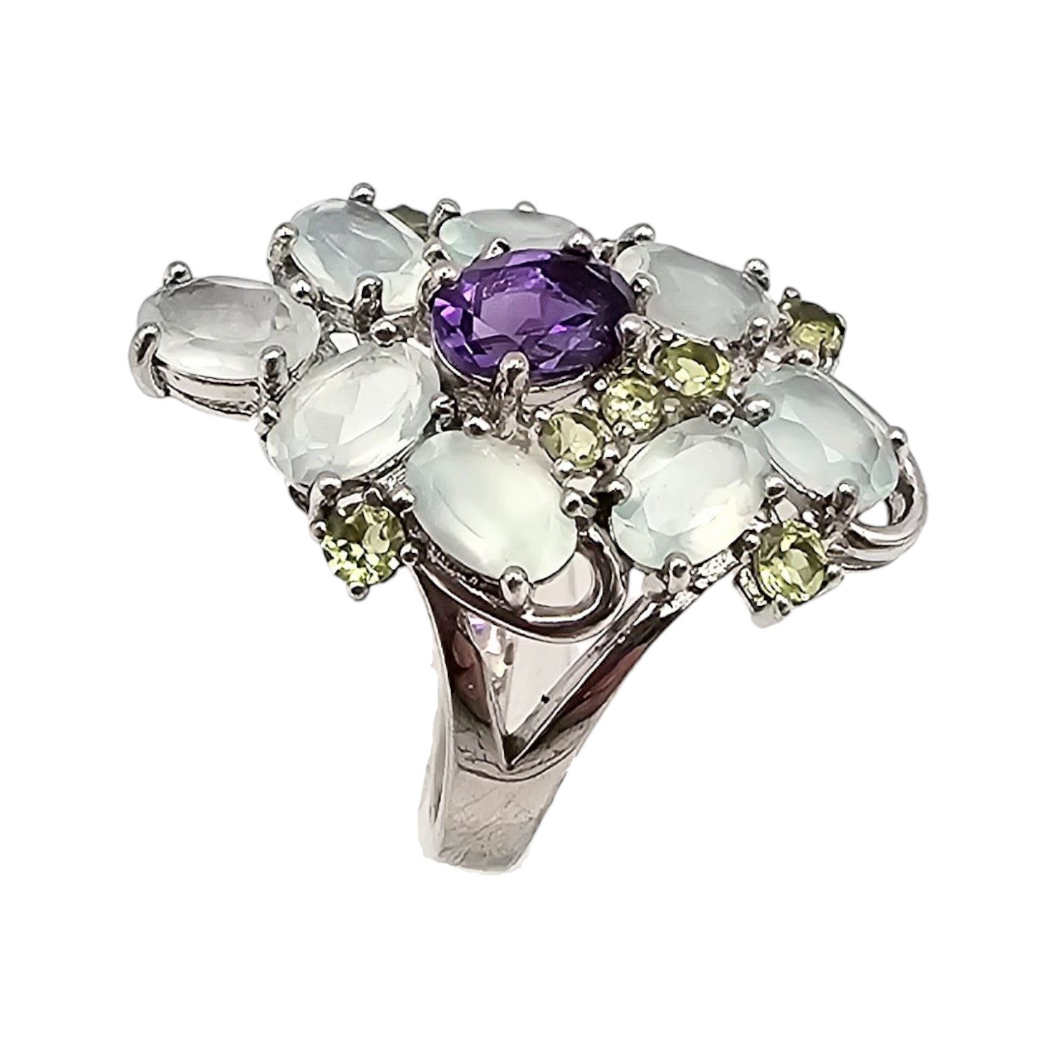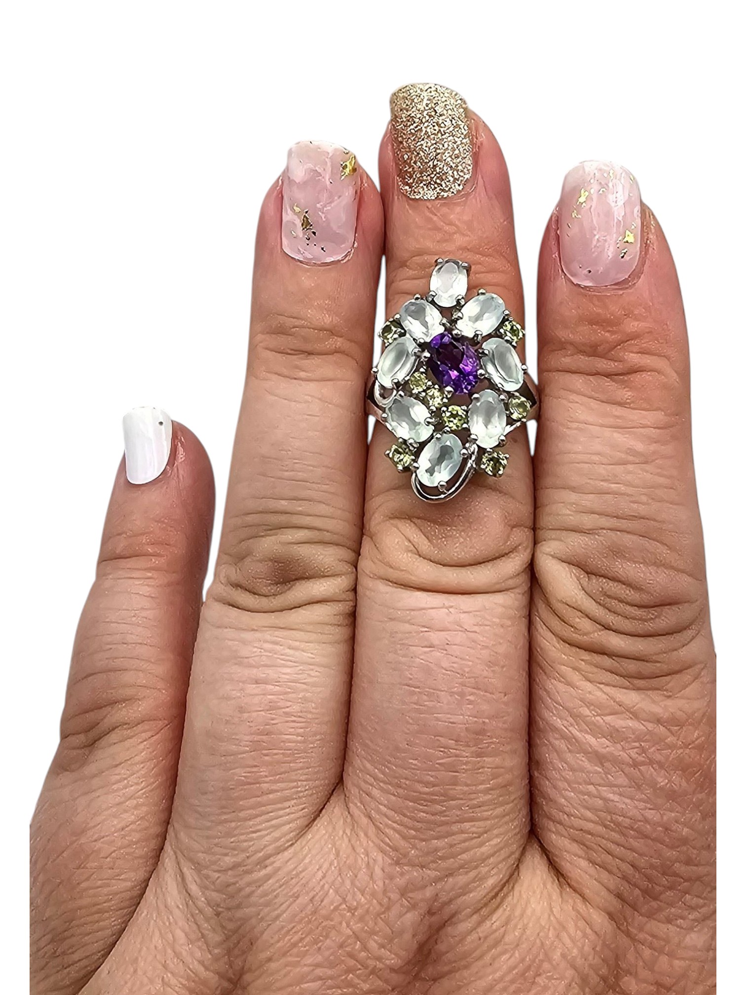 Moonstone Amethyst Peridot Sterling Silver Ring Size 6.75 5.9 G