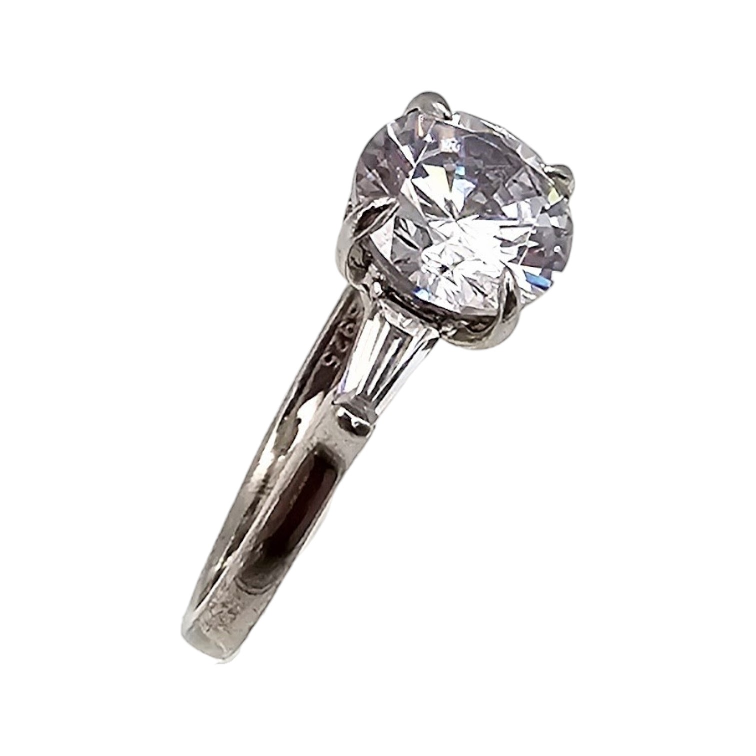 S Rhinestone Sterling Silver Cocktail Ring Size 7.5 3 G