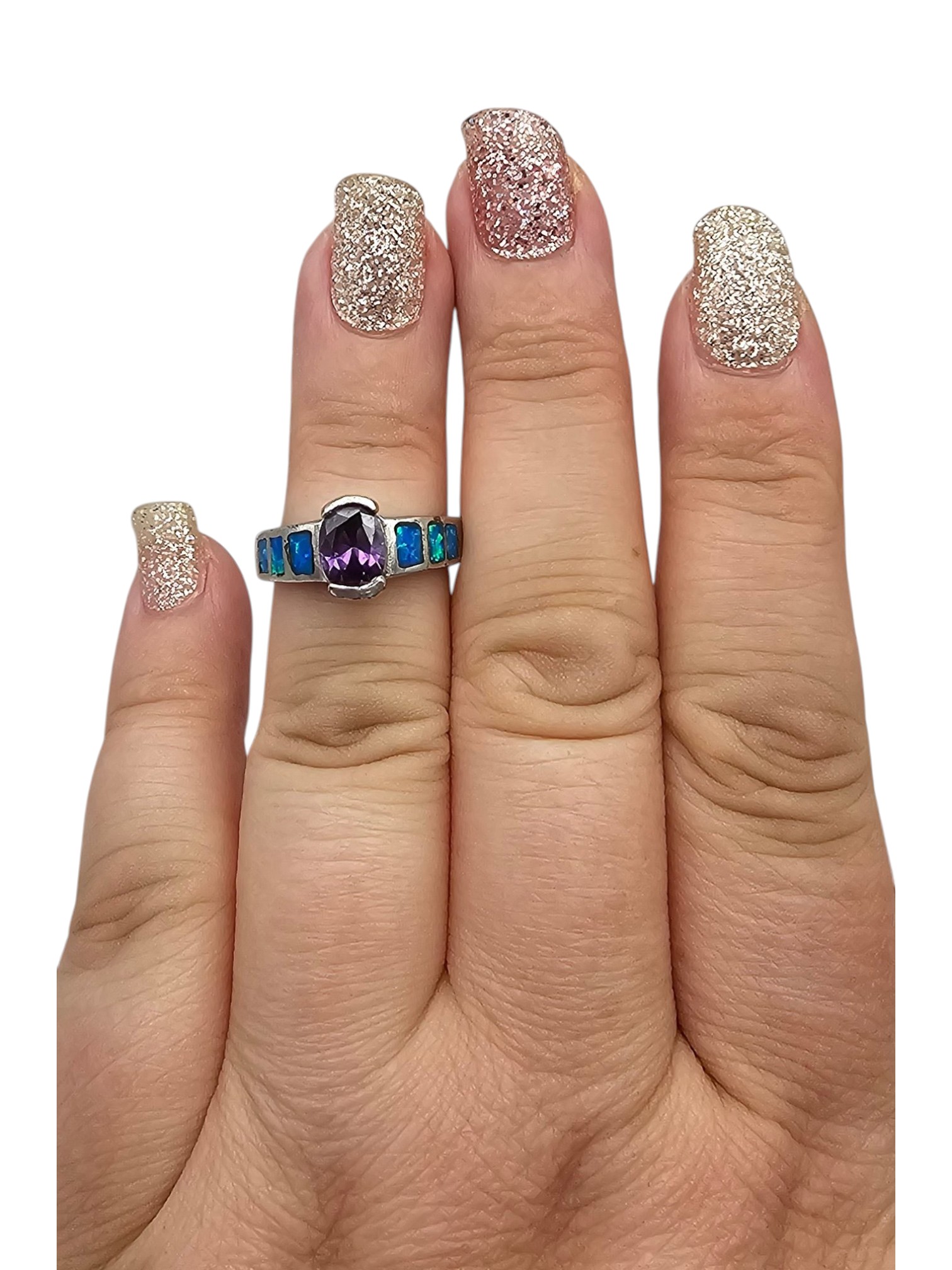 Amethyst Opal Sterling Silver Cocktail Ring Size 5.5 3.6 G
