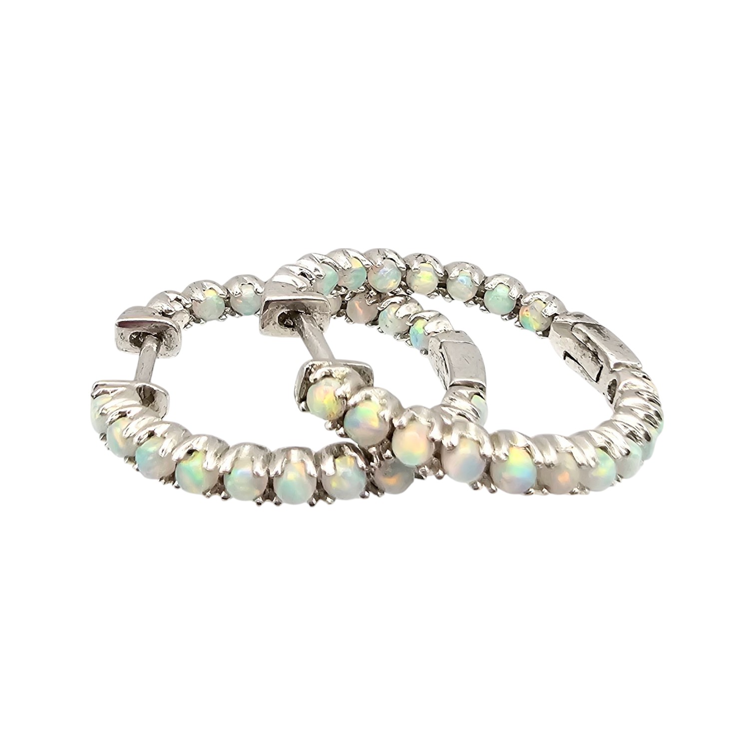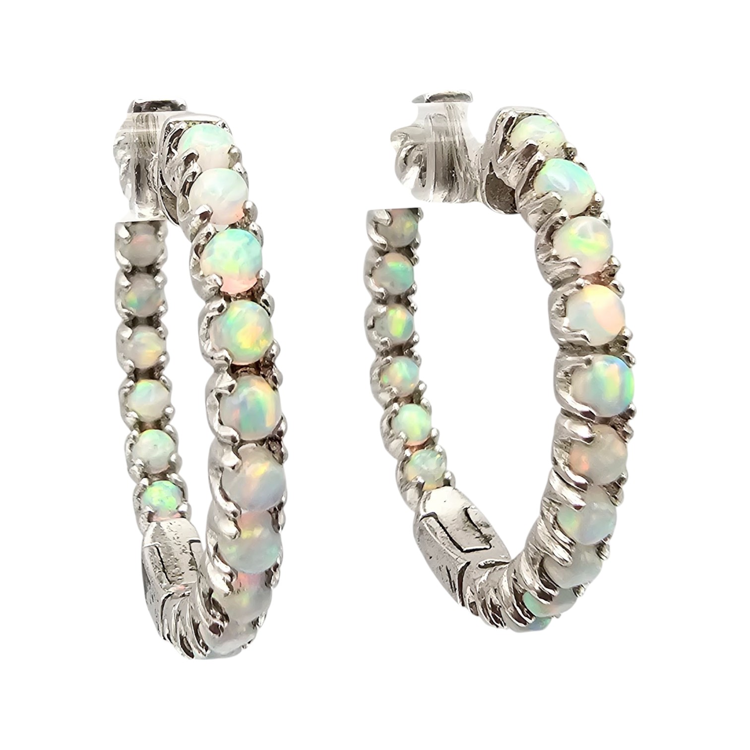 SJM Opal Sterling Silver Hoop Earrings 5.8 G