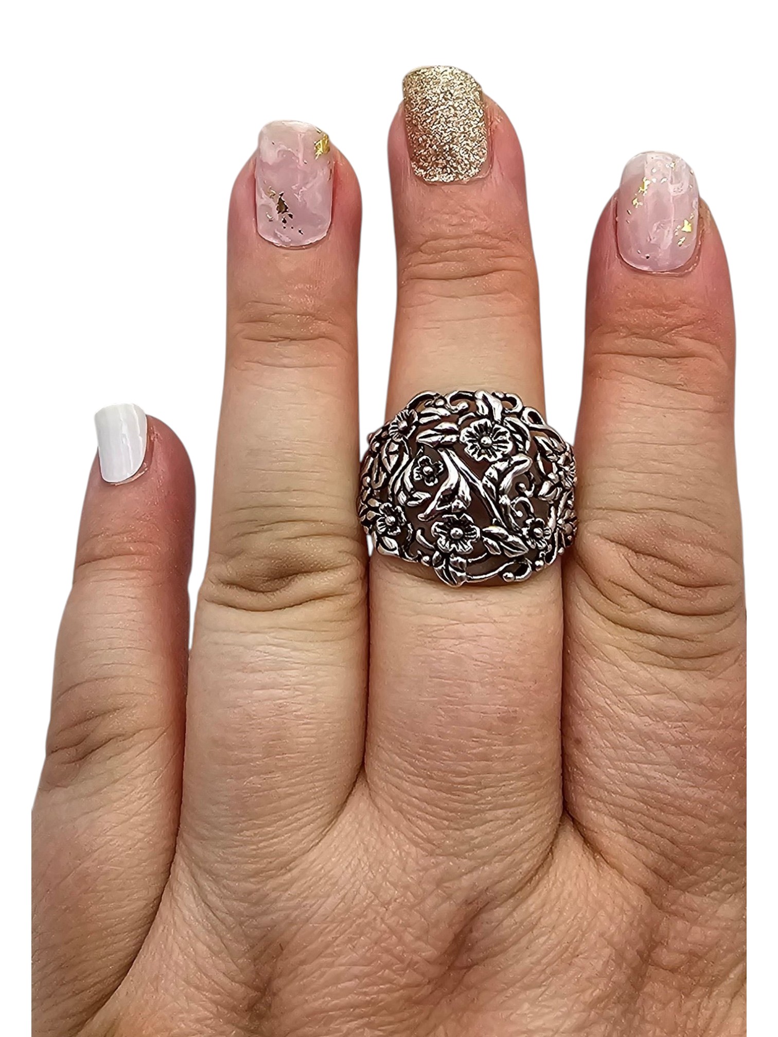 Sterling Silver Floral Ring Size 12.5 5.6 G