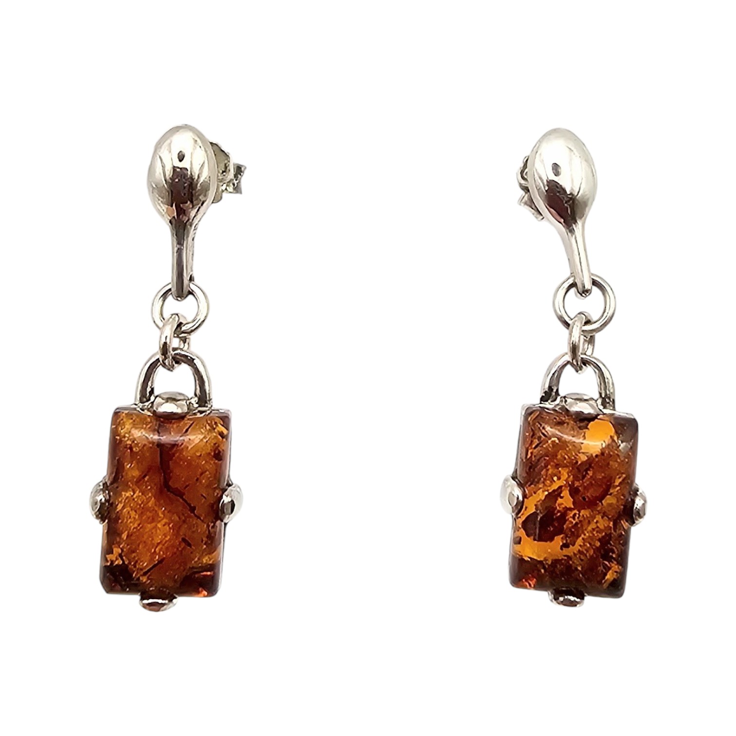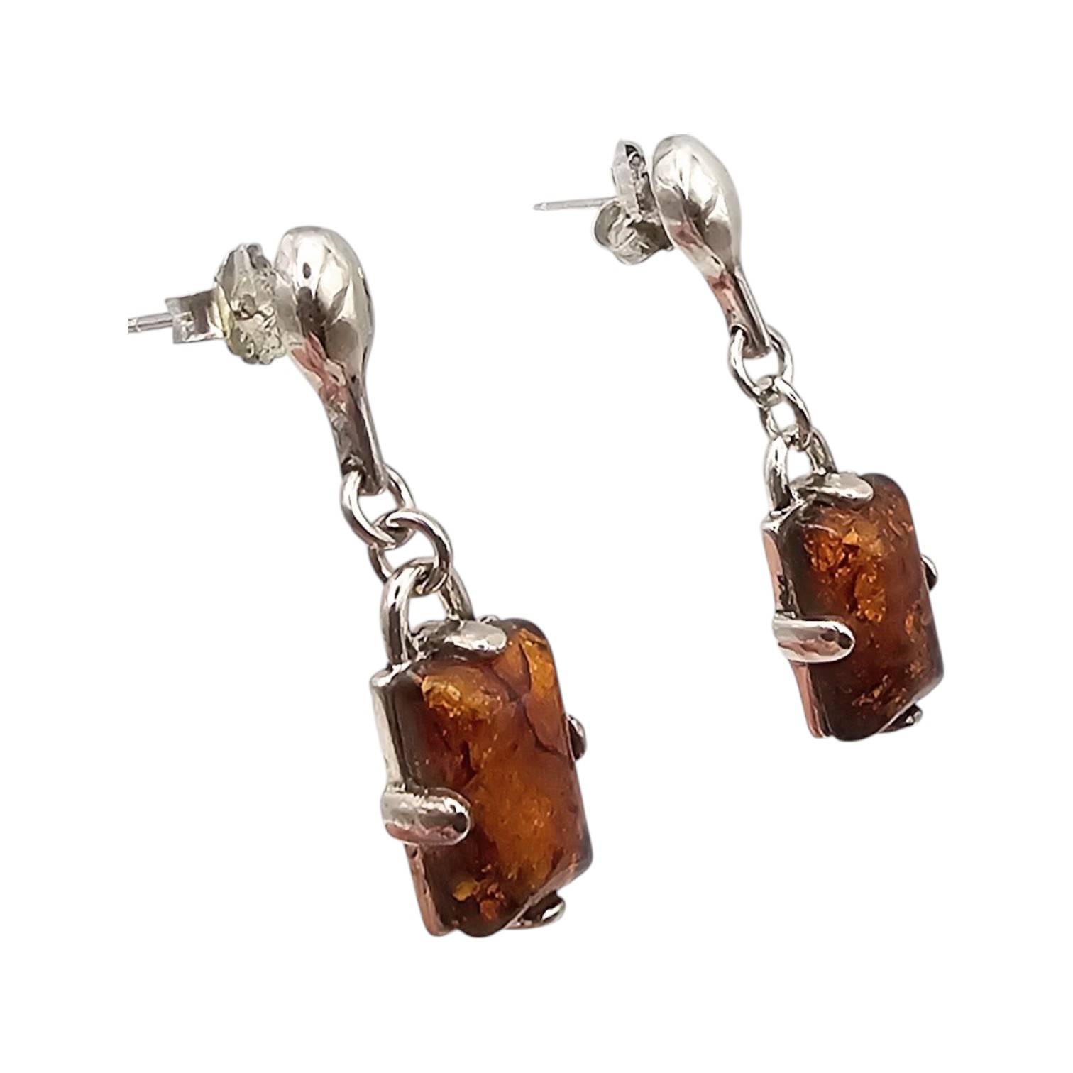 S Amber Sterling Silver Dangle Earrings 4.7 G