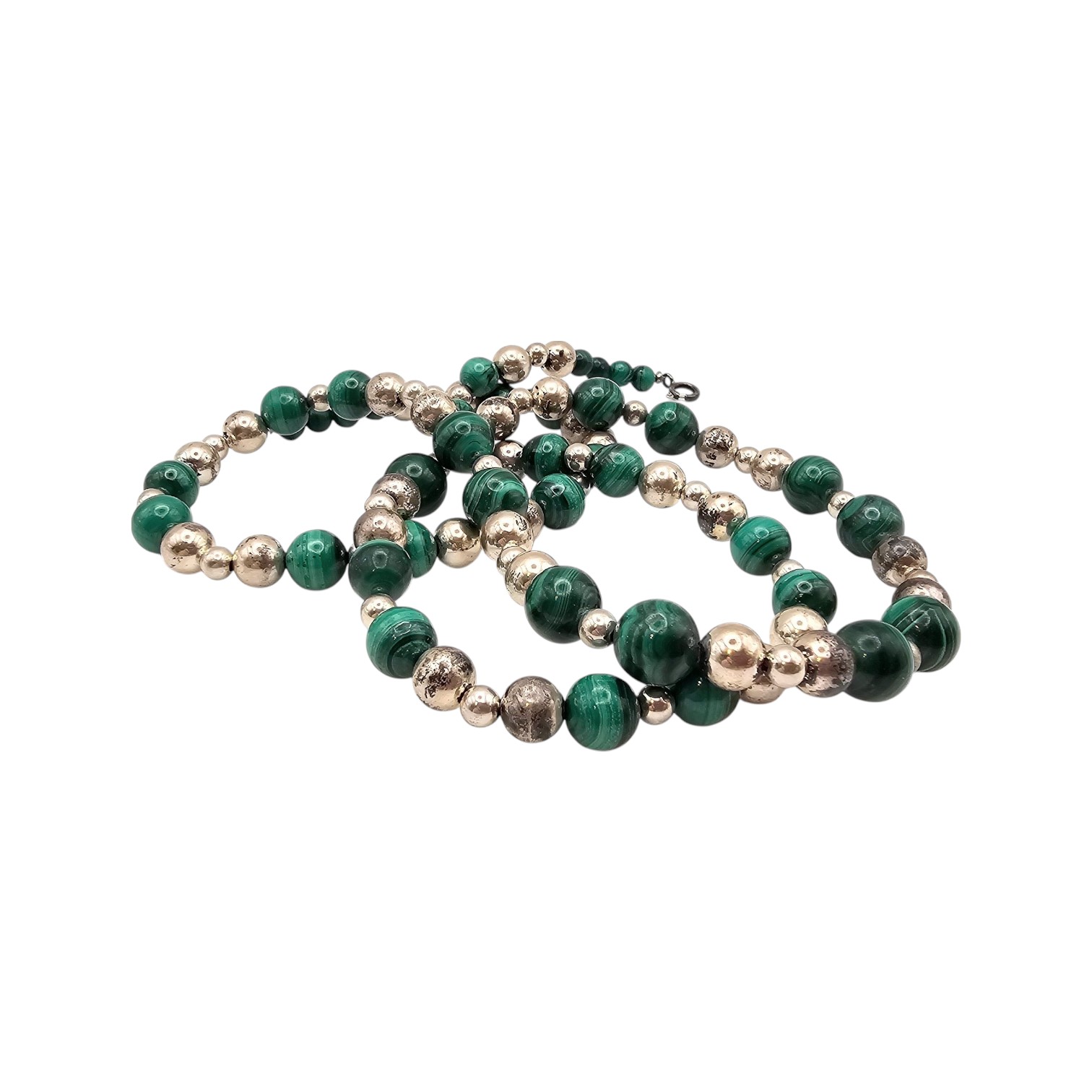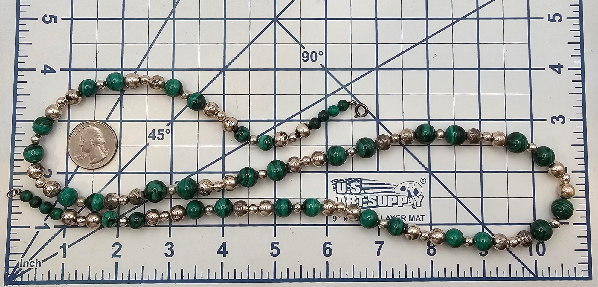 Vintage Malachite Sterling Silver Bead Necklace 76.9 G