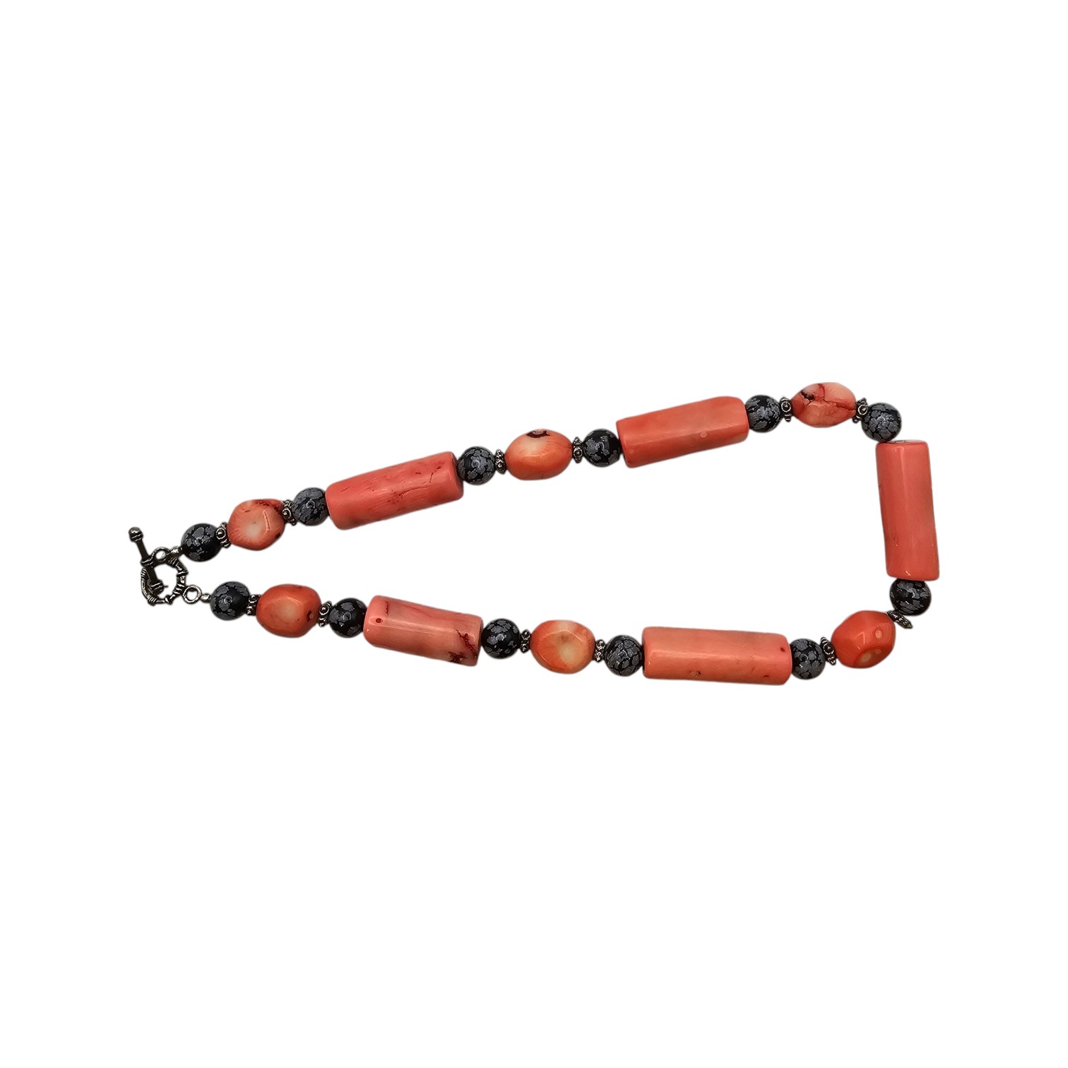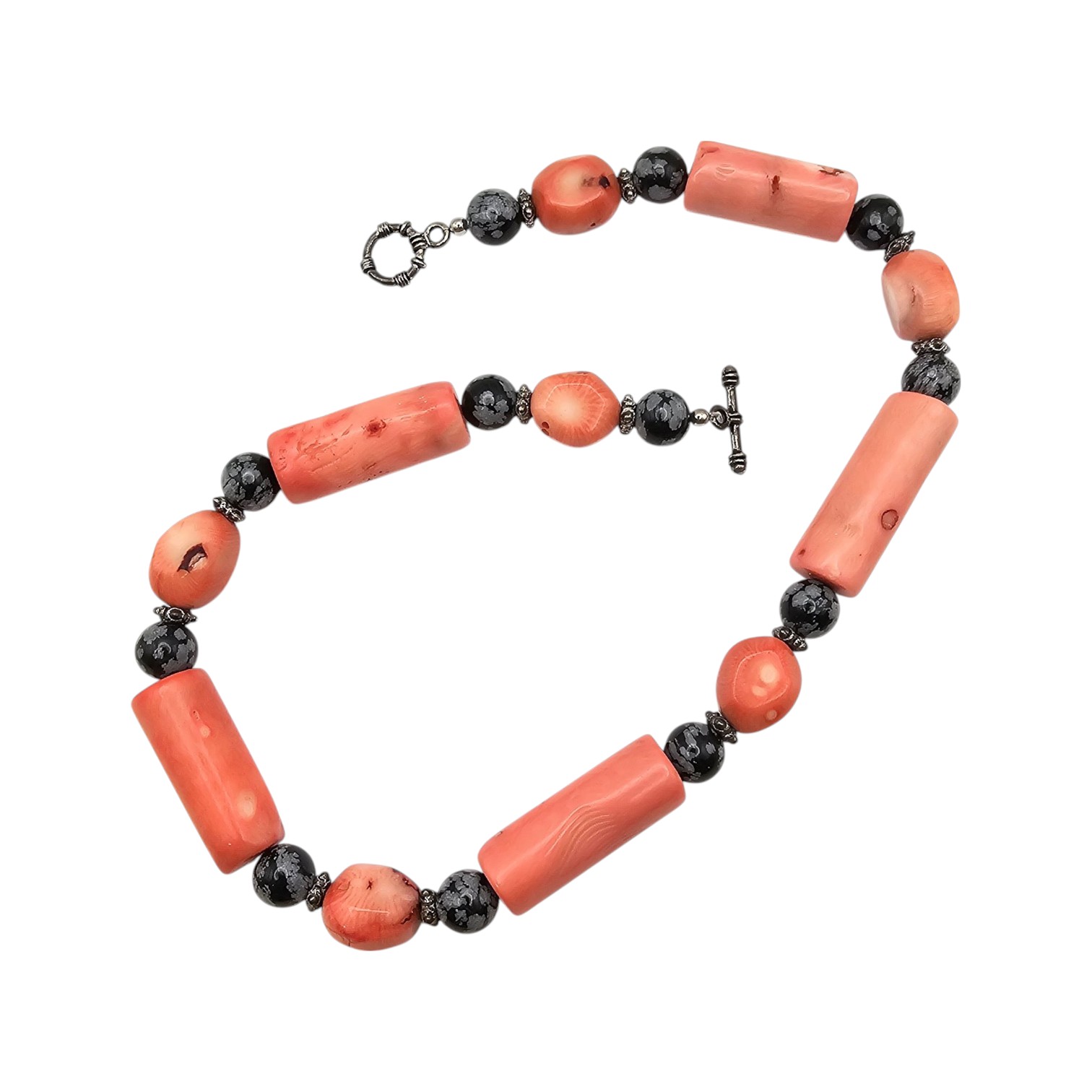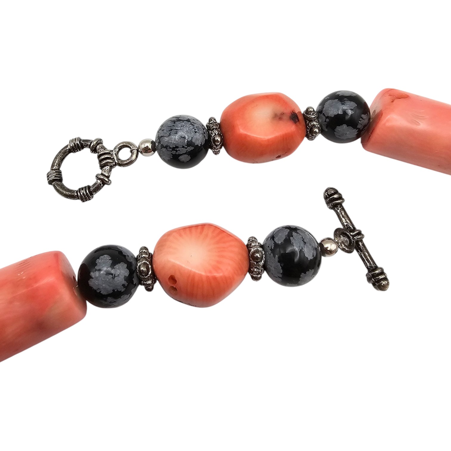 Snowflake Obsidian Coral Silver Tone Toggle Necklace