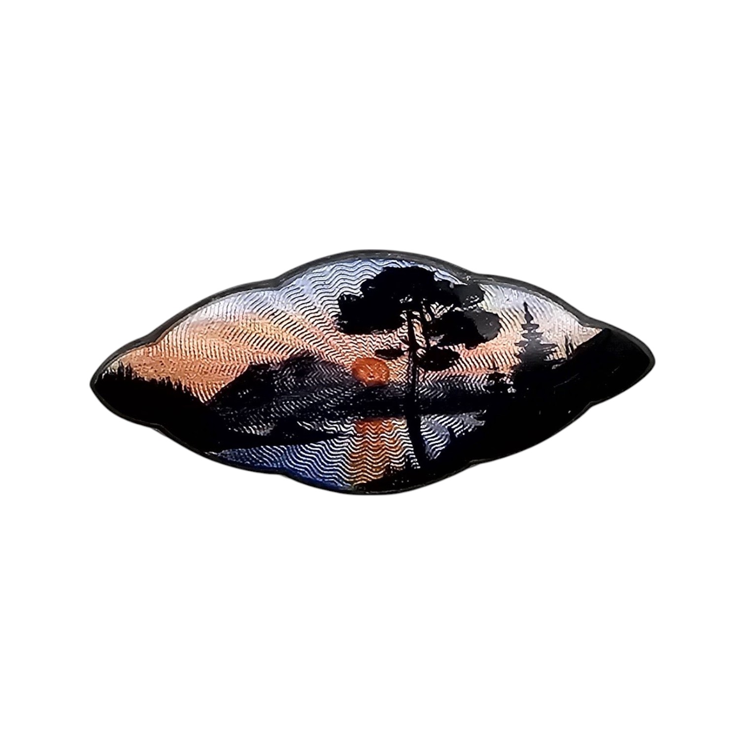 Signed Norway Guilloche Enamel Sterling Silver Brooch 4 G