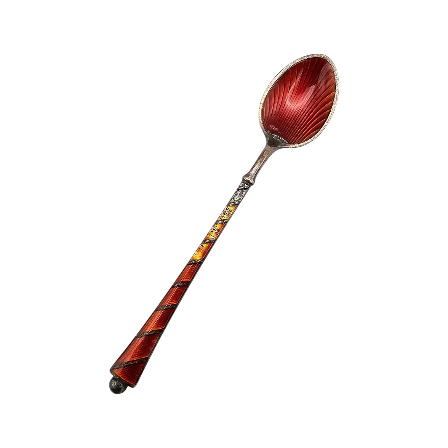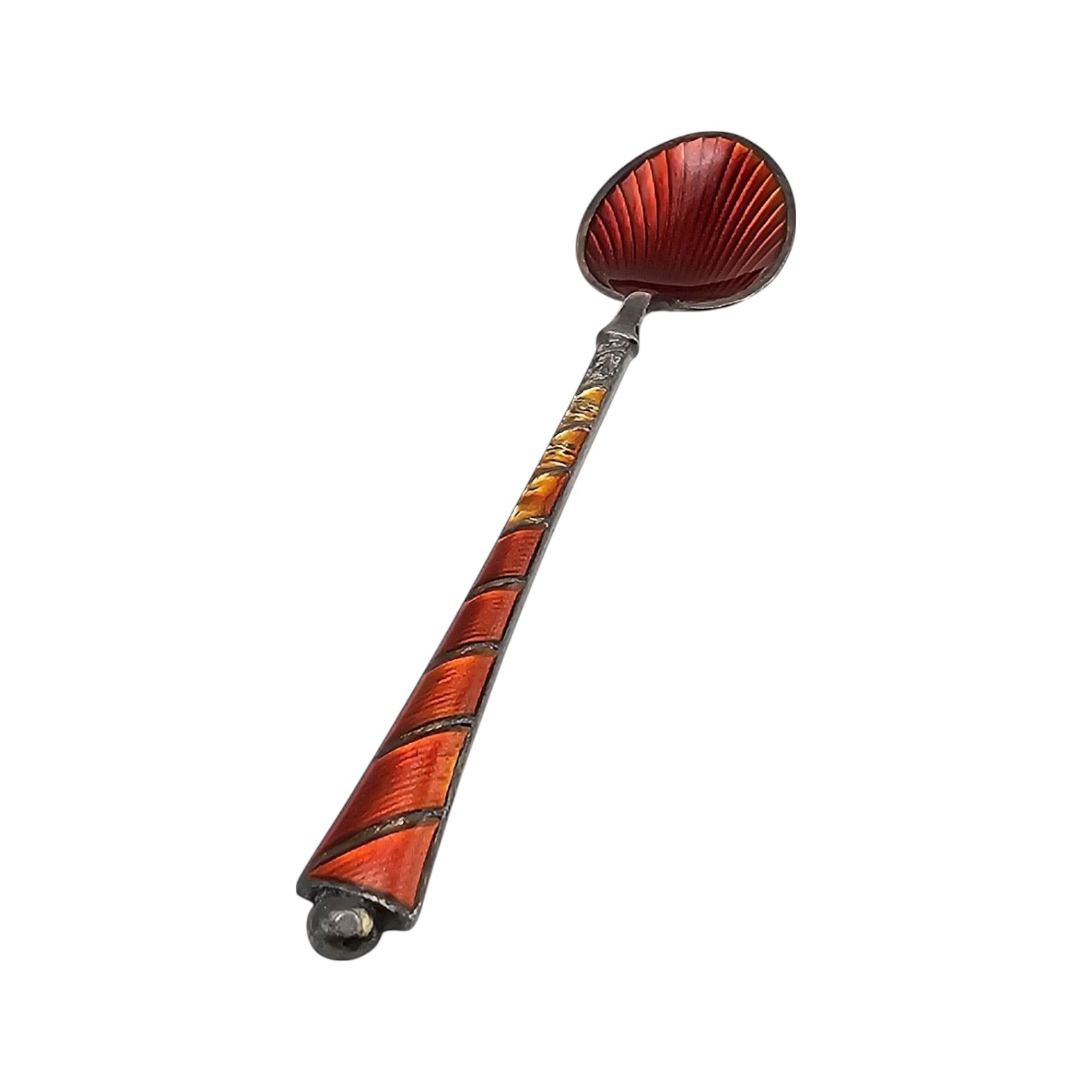 Eld Denmark Guilloche Enamel Sterling Silver Orange/Red Spoon 8 G