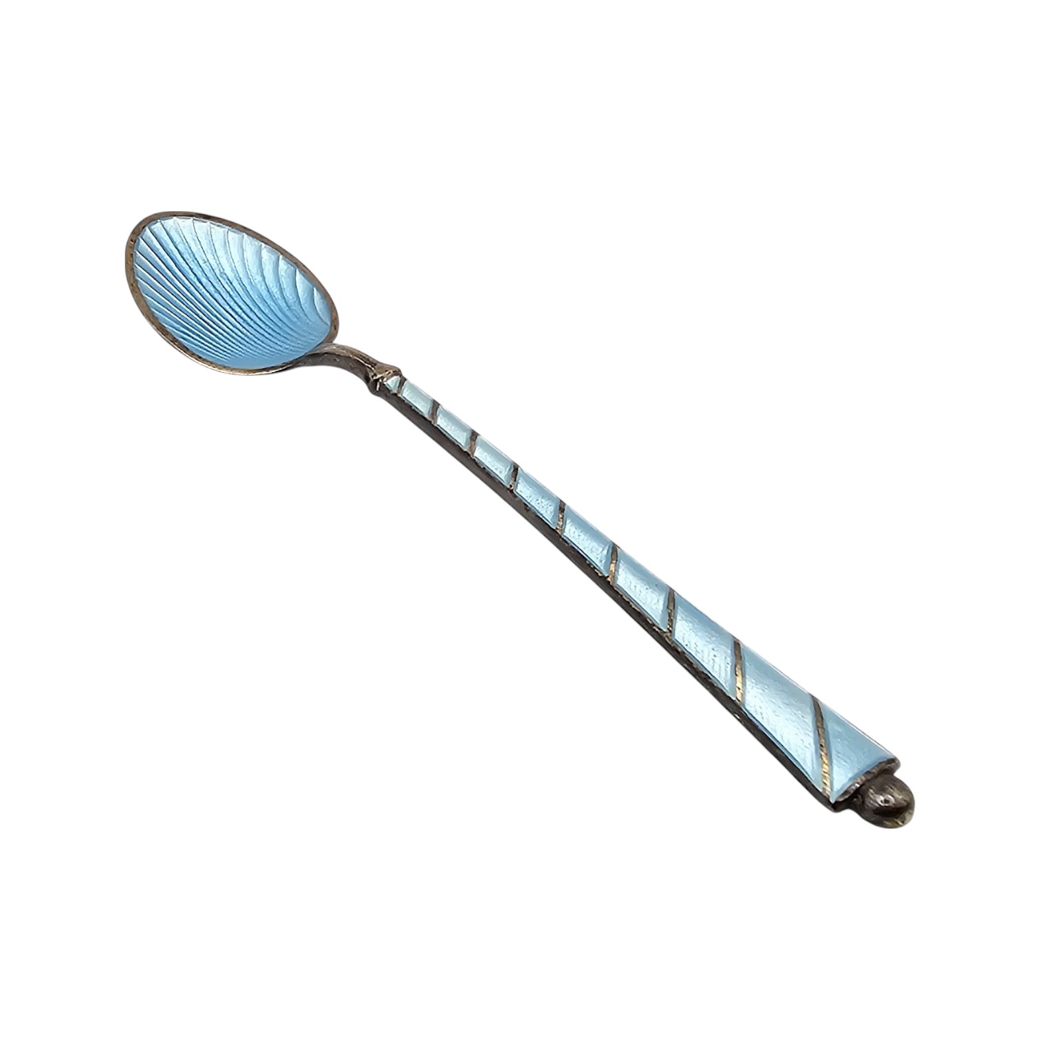 Eld Denmark Guilloche Enamel Sterling Silver Light Blue Spoon 8.3 G