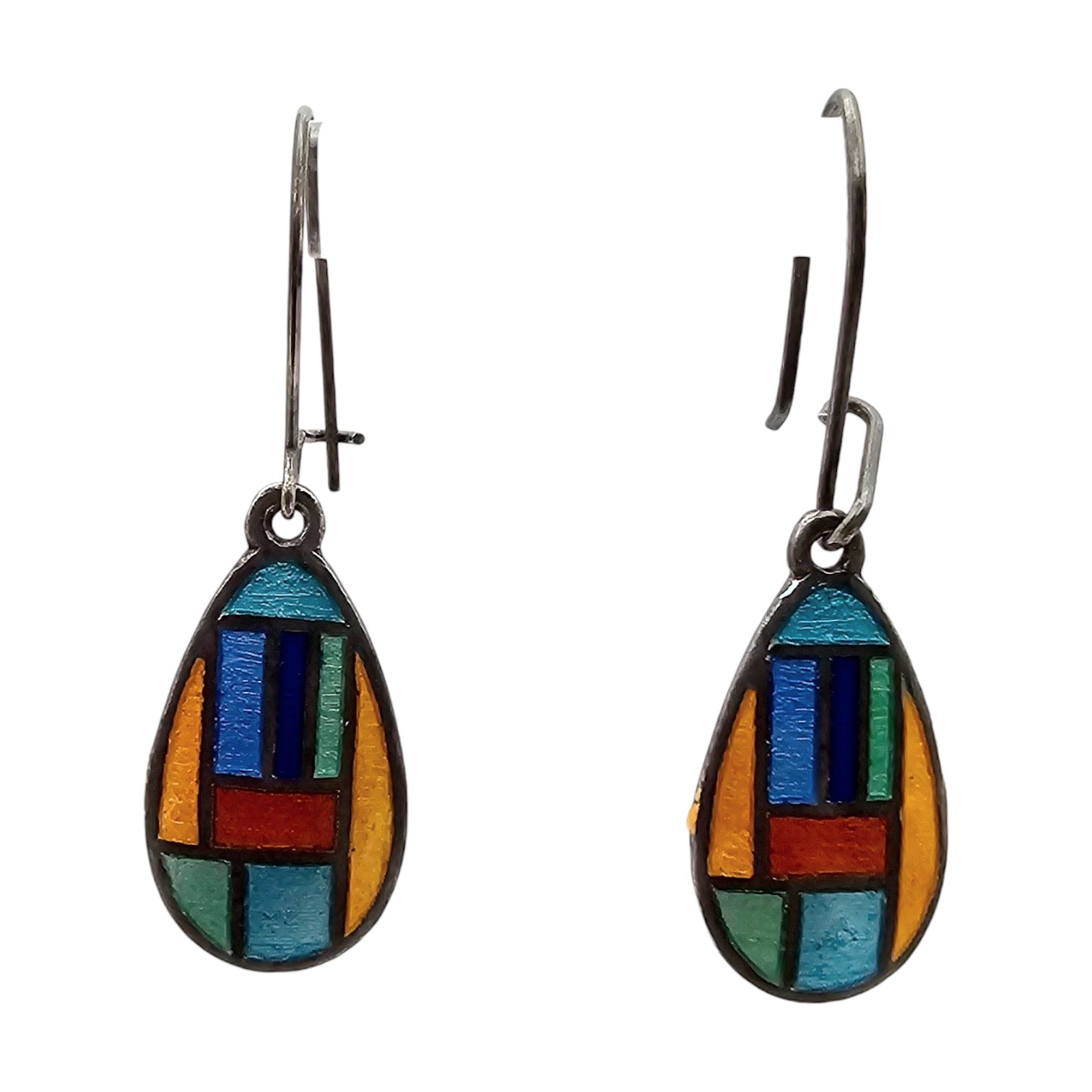 Siam Enamel Sterling Silver Dangle Earrings 2 G