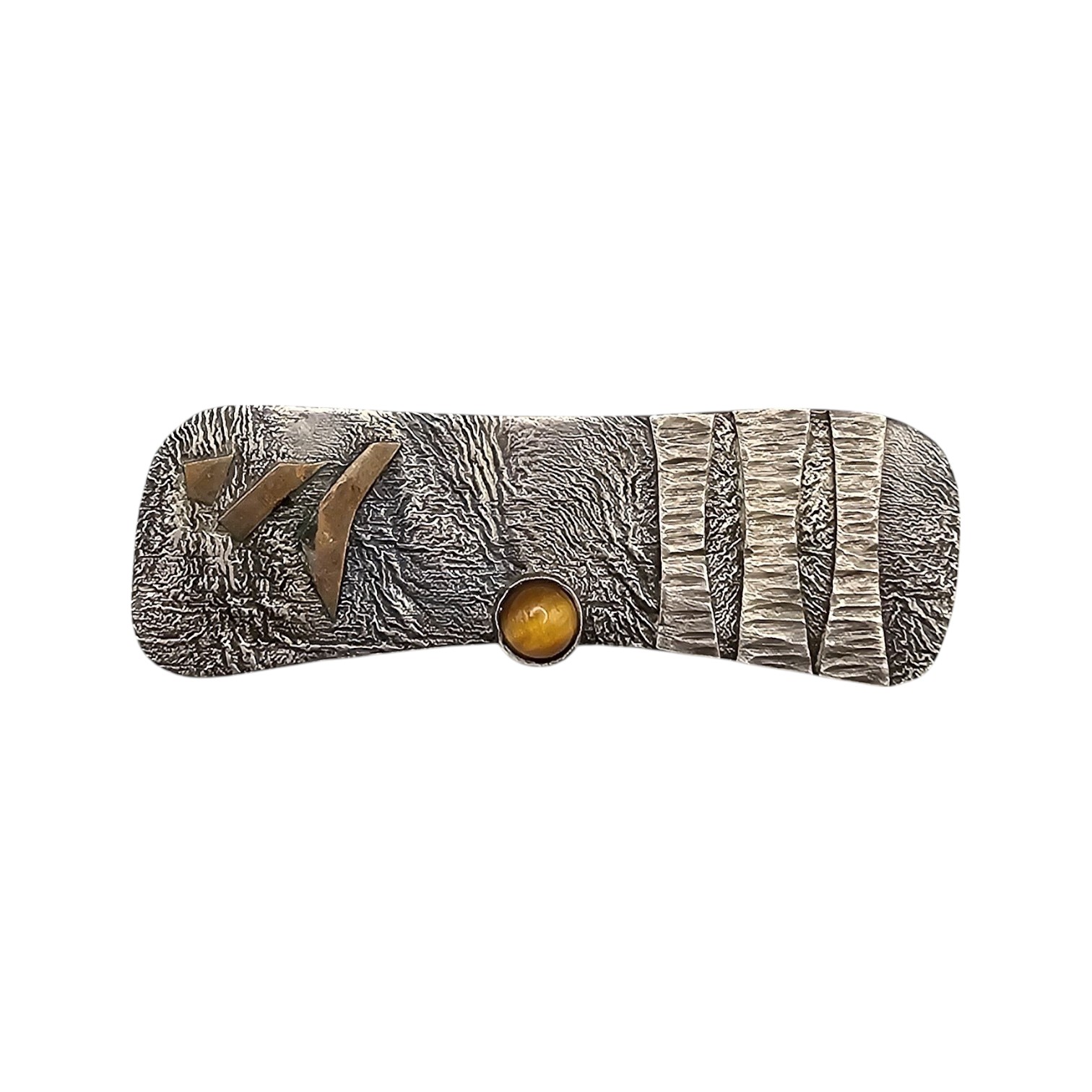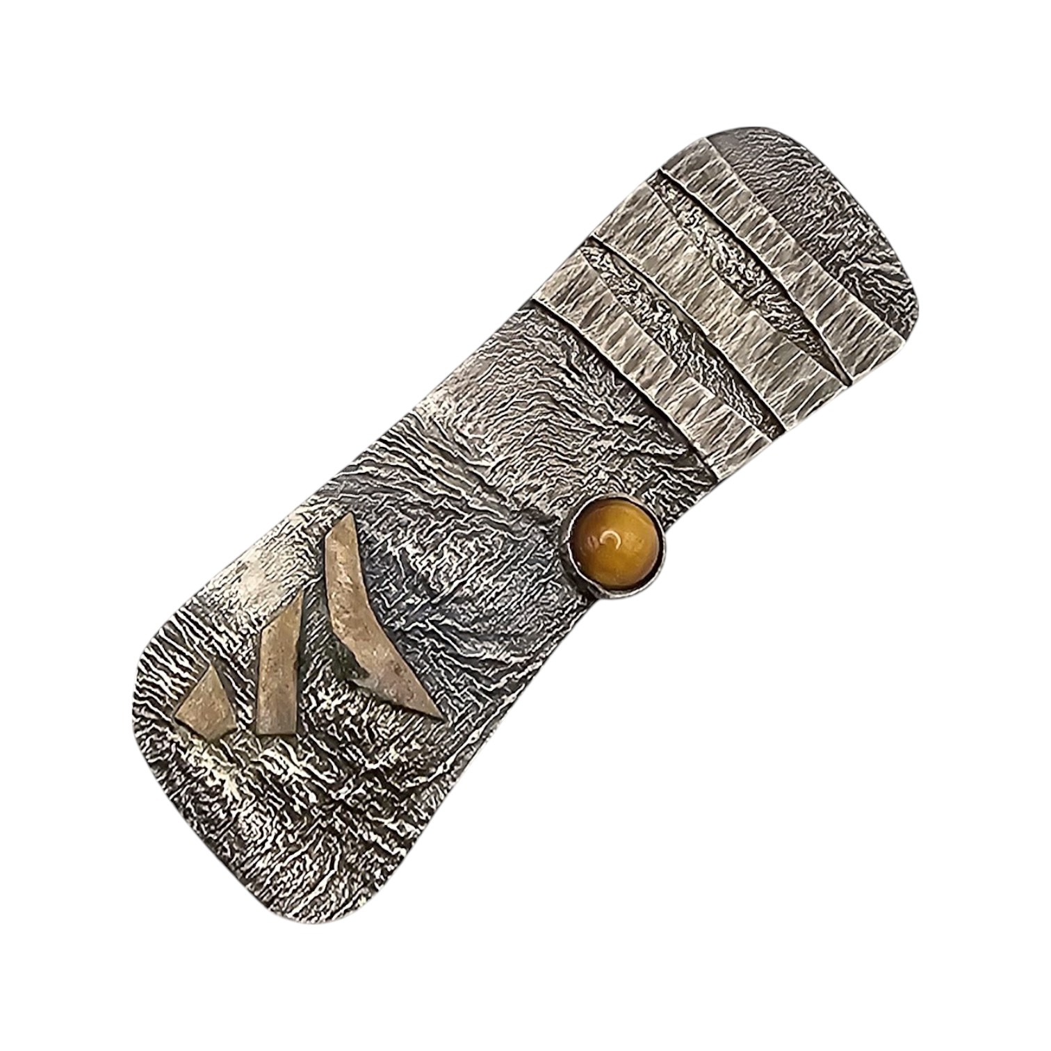Tiger’s Eye Sterling Silver Modernist Brooch 6 G