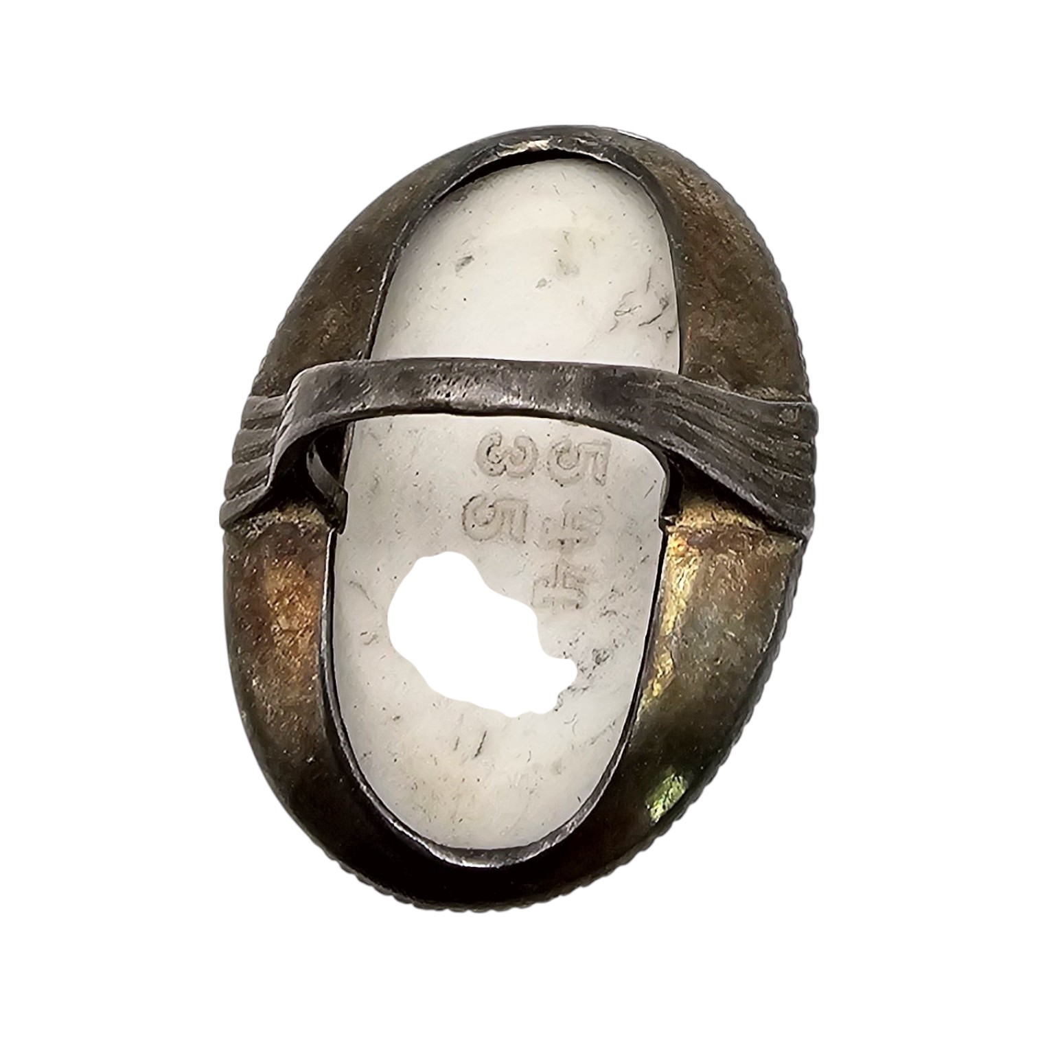 Vintage Porcelain Painted Victorian Scene Sterling Silver Ring Size 4.25 10.7 G