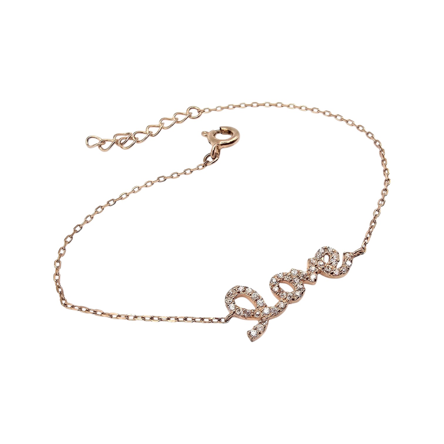 N Clear Stone Rose Gold Over Sterling Silver LOVE Bracelet 1.4 G