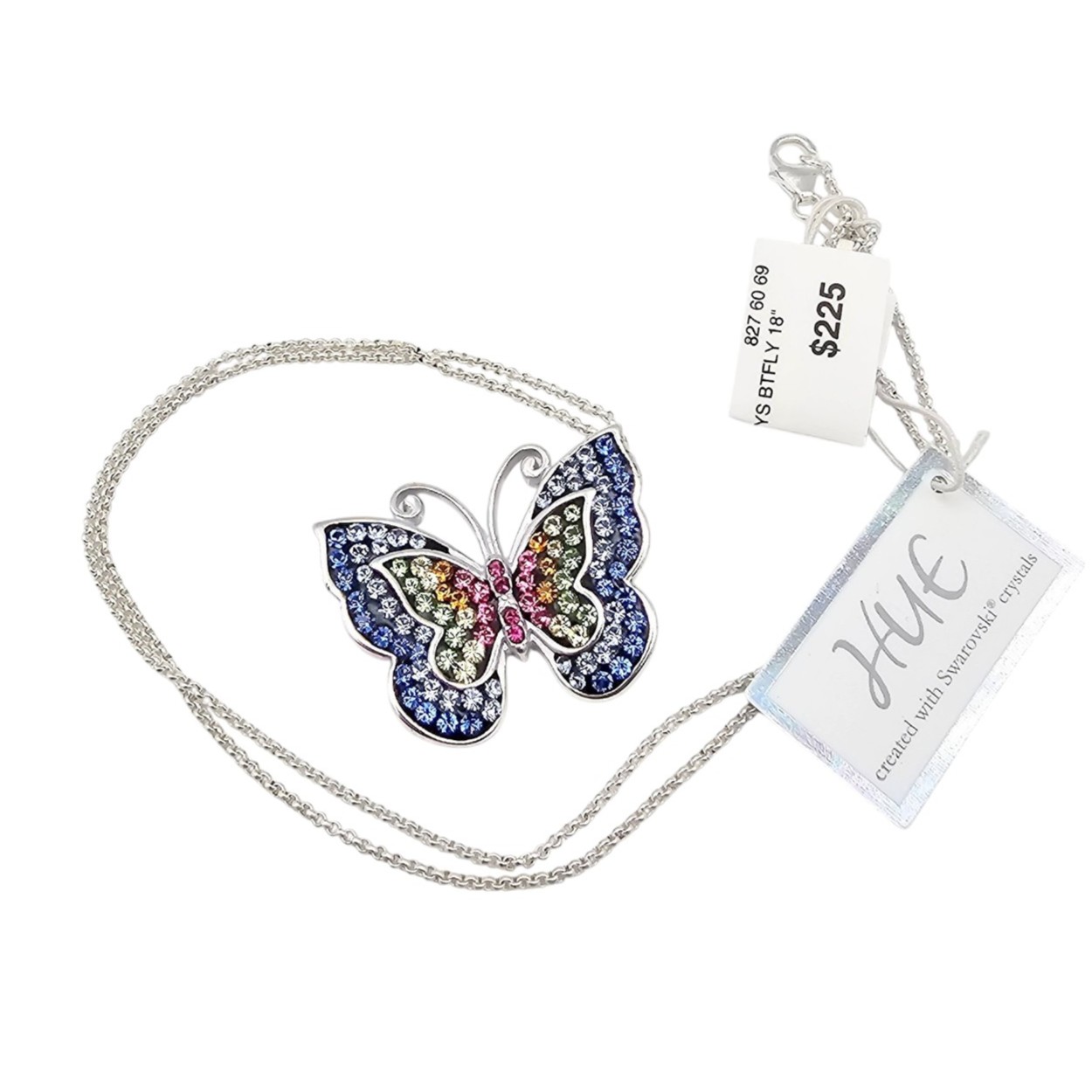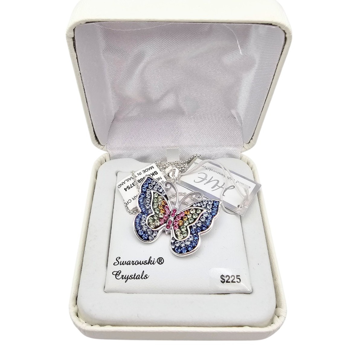 NIB Swarovski Crystal Colorful Sterling Silver Butterfly Necklace 10.7 G