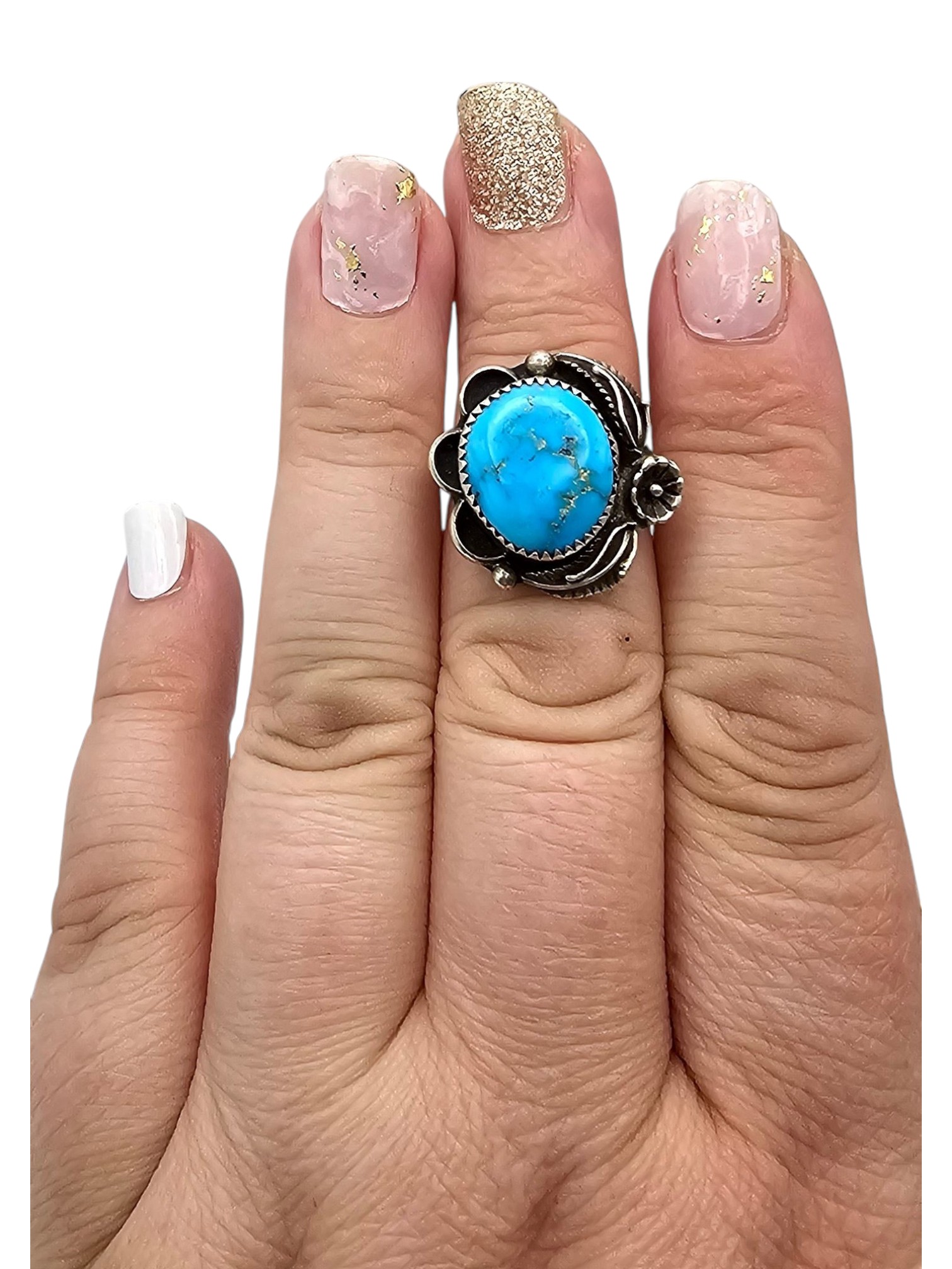 Signed BP Native Turquoise Sterling Silver Ring Size 6.25 6.9 G