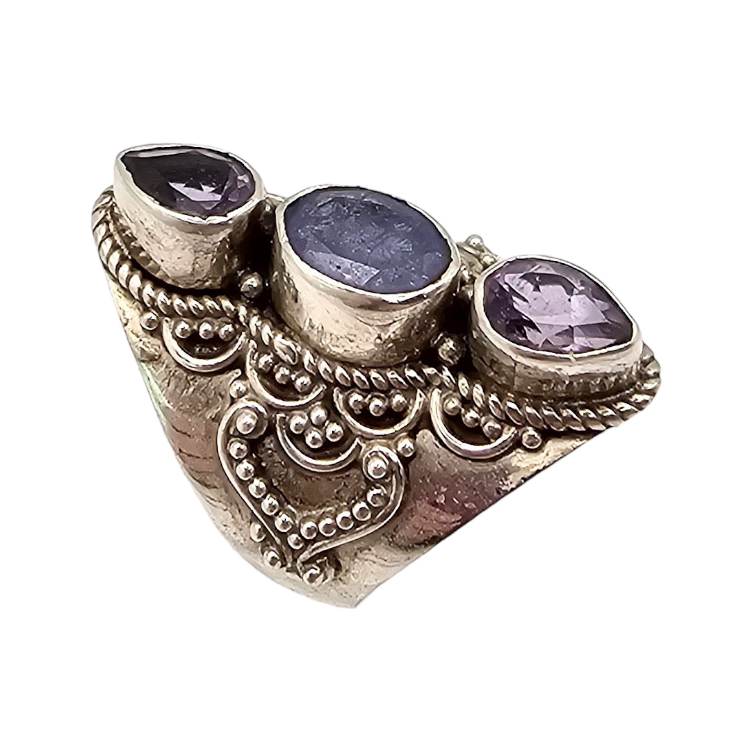 Quartz Amethyst Sterling Silver Ring Size 7 7.8 G