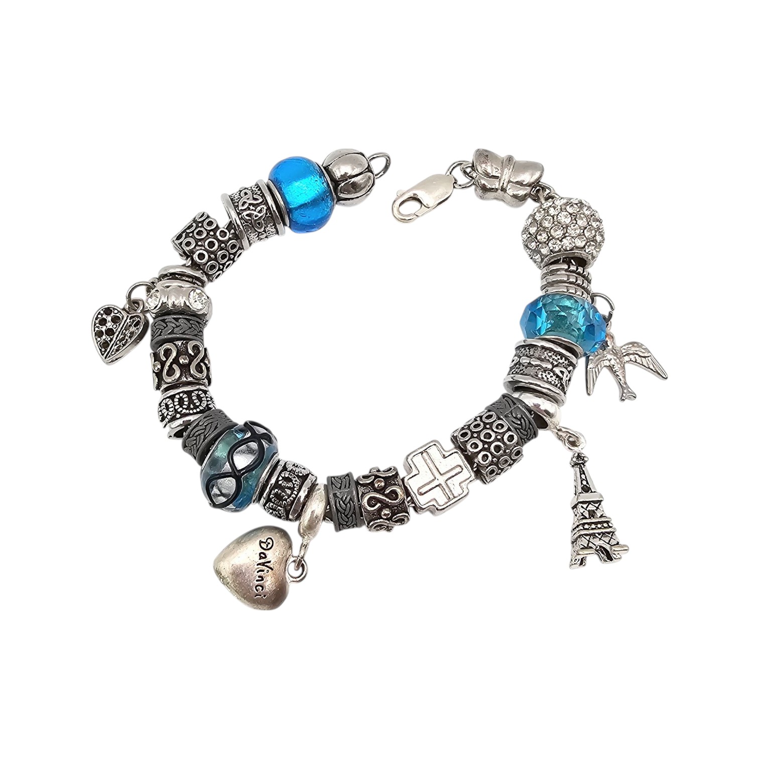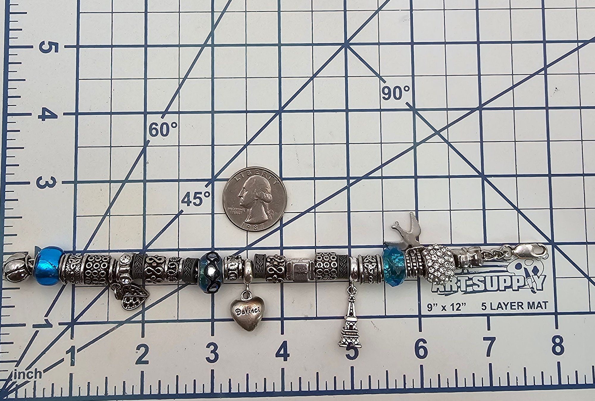 Sterling Silver Charm Bracelet 56.4 G as is unsure if all the charms are Sterling Silver