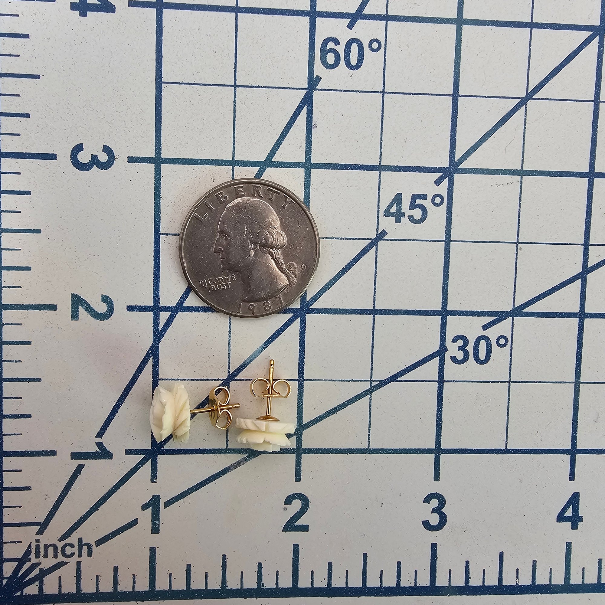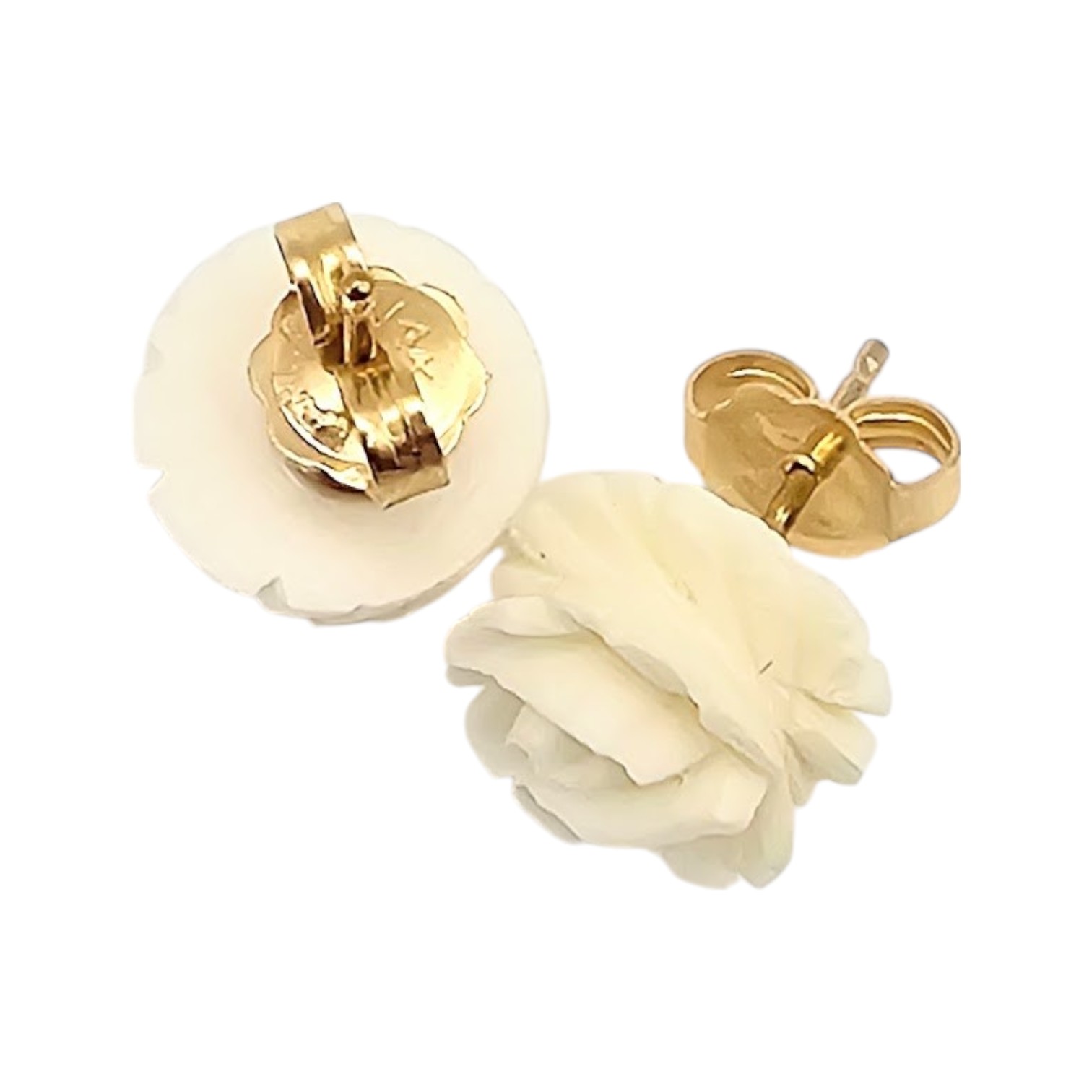 NIB Carla Genuine Ivory Carved Gold Filled Earrings 1.2 G