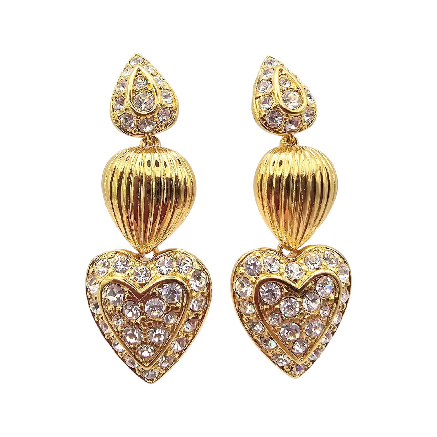 Nolan Miller Clear Rhinestone Gold Tone Drop Dangle Earrings