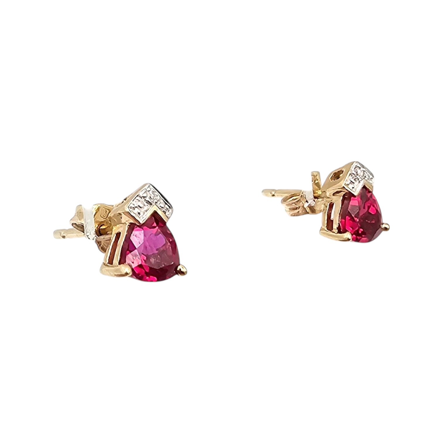 Signed 10K Gold Ruby Diamond Earrings 1.4 G Approximately 0.50 TCW