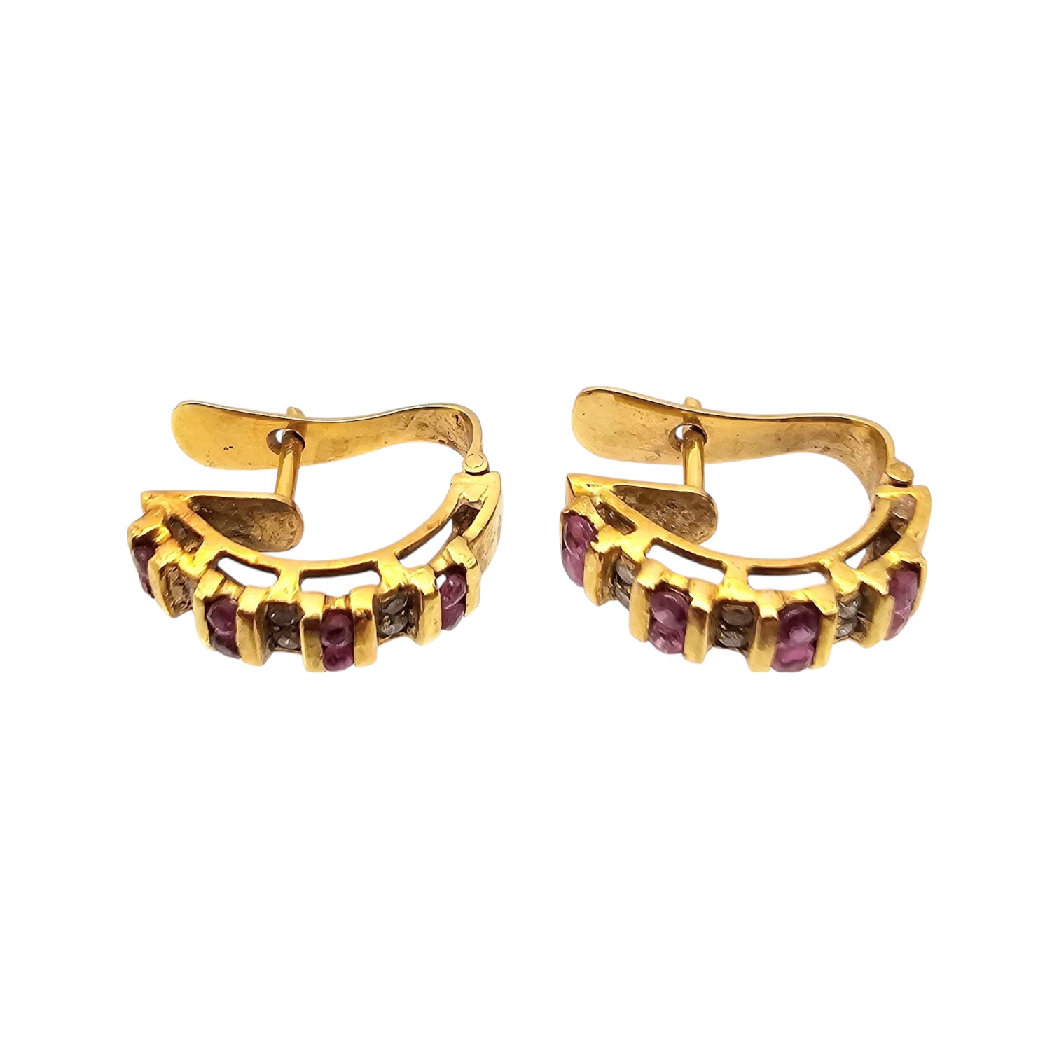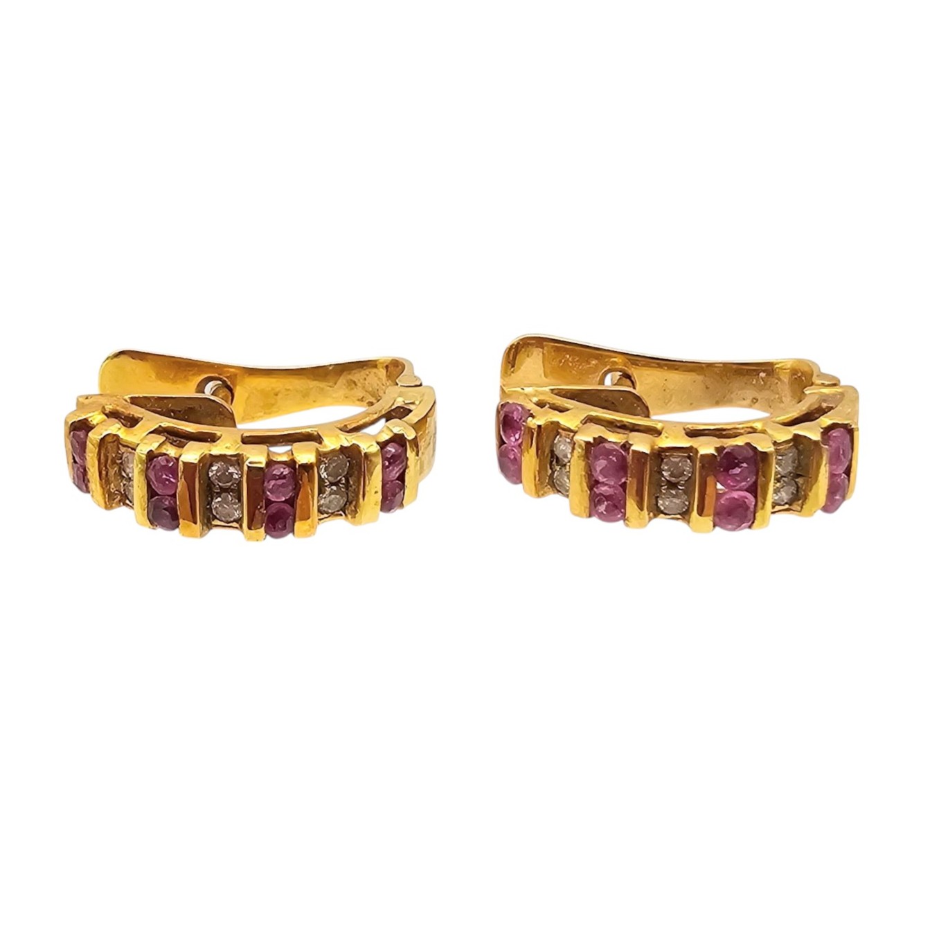 14K Gold Ruby Diamond Hoop Earrings 5 G Approximately 0.84 TCW