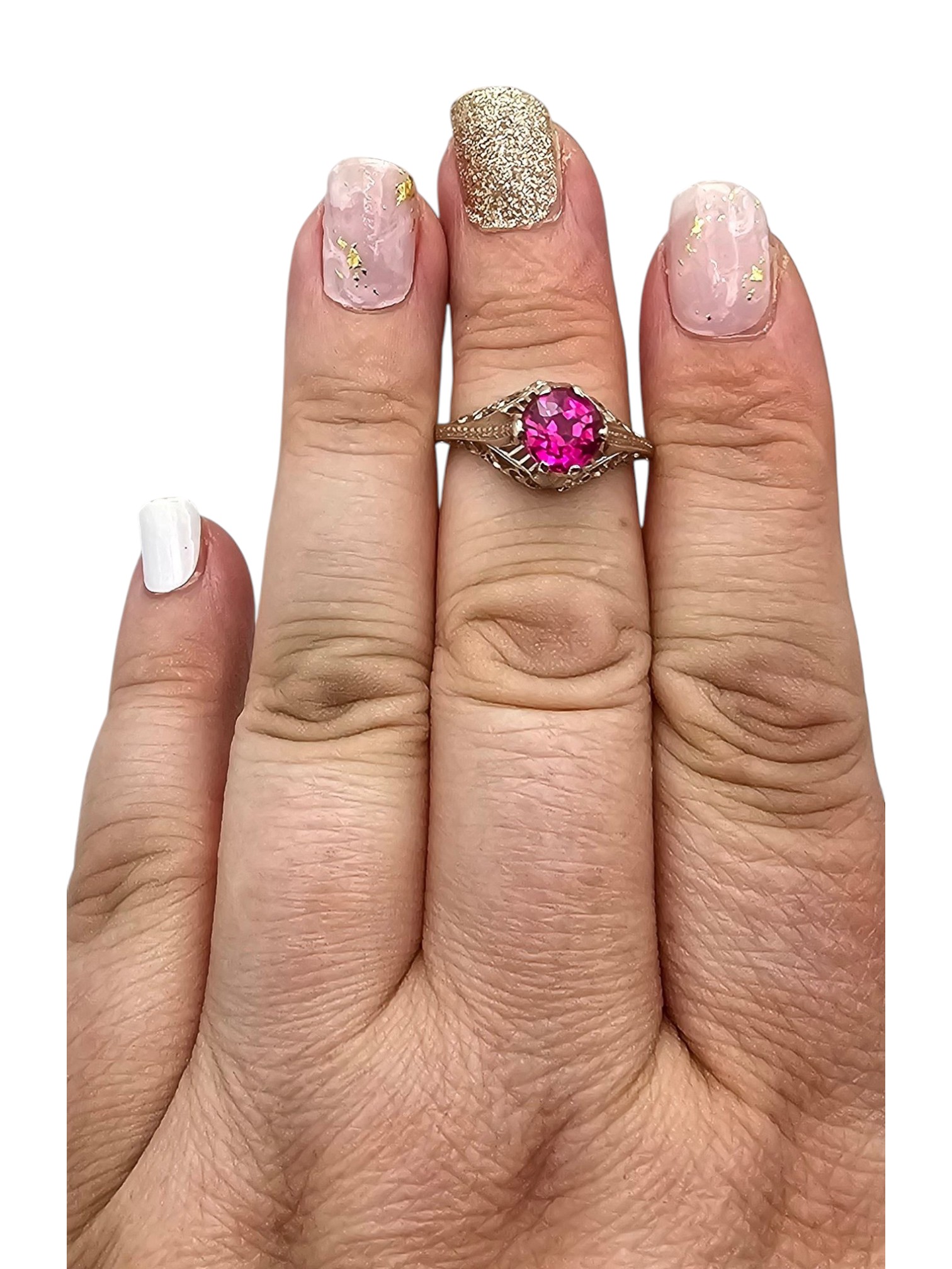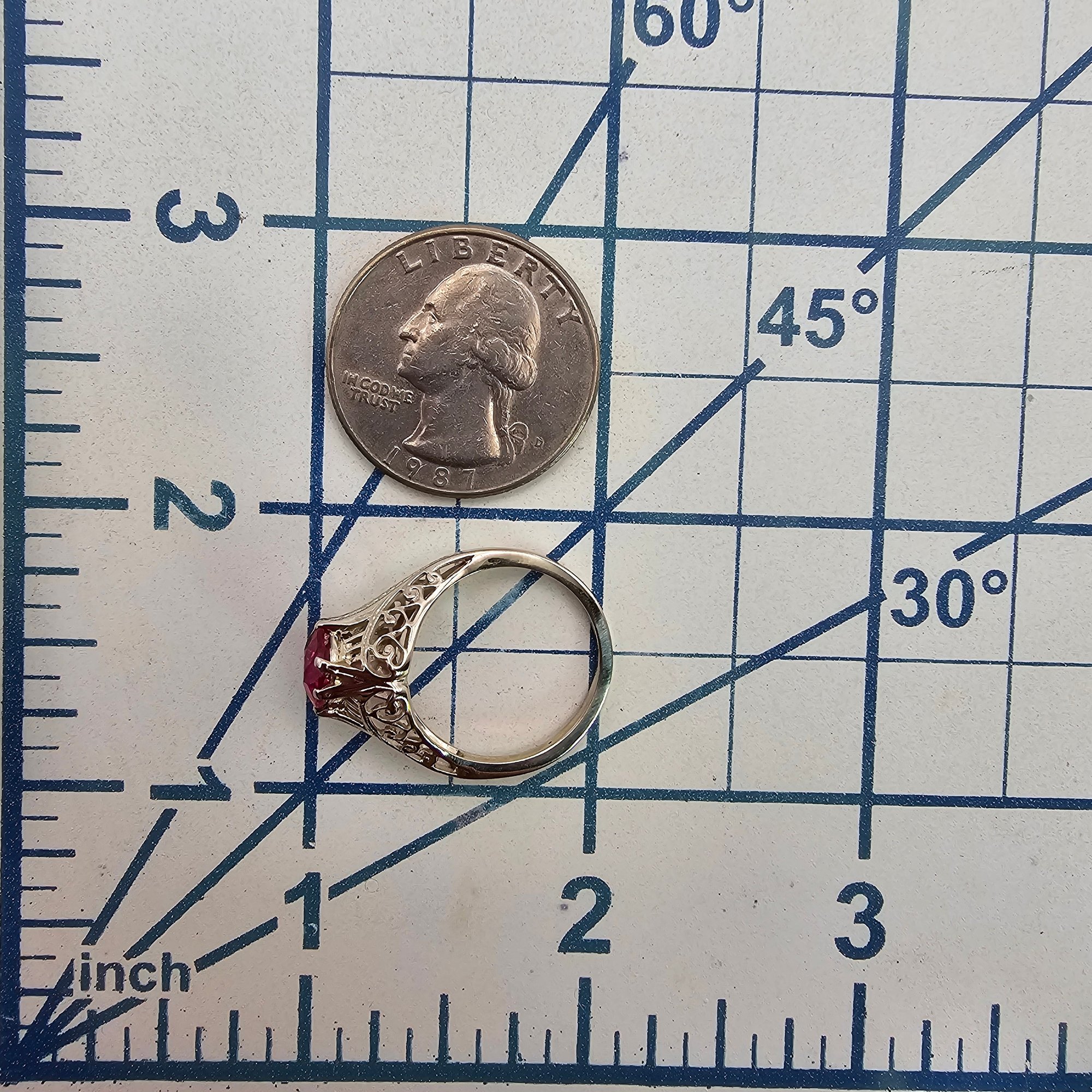 Vintage 14K White Gold Ruby Filigree Ring Size 6.5 2.8 G Approximately 1 TCW