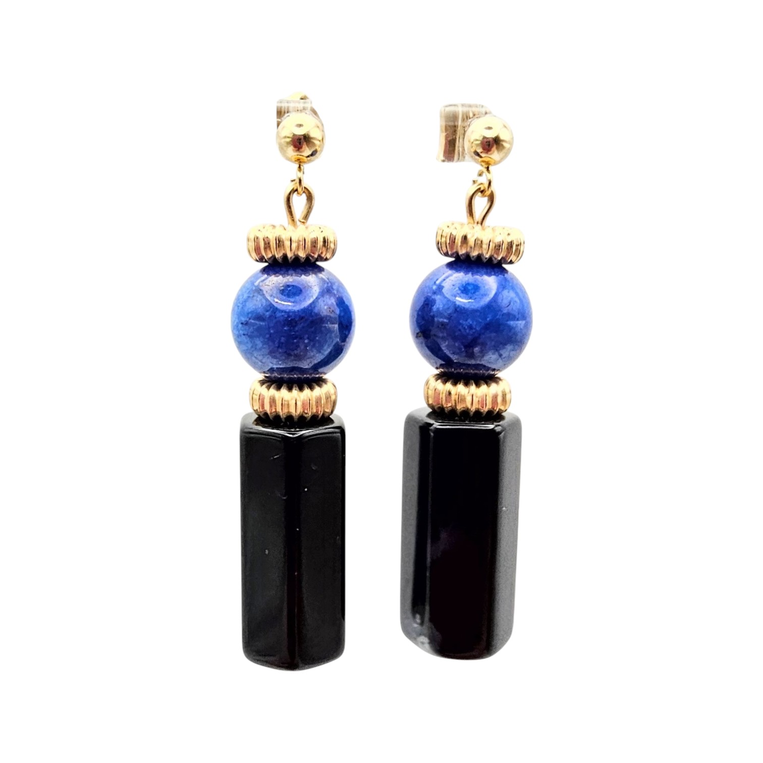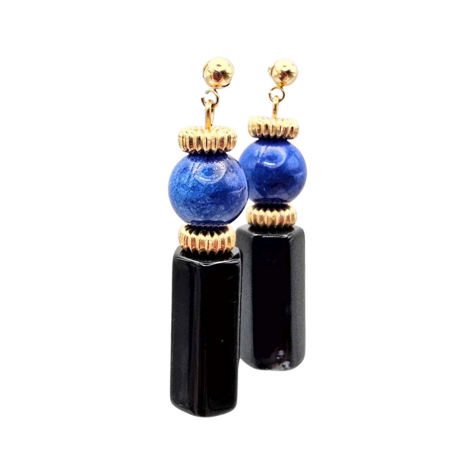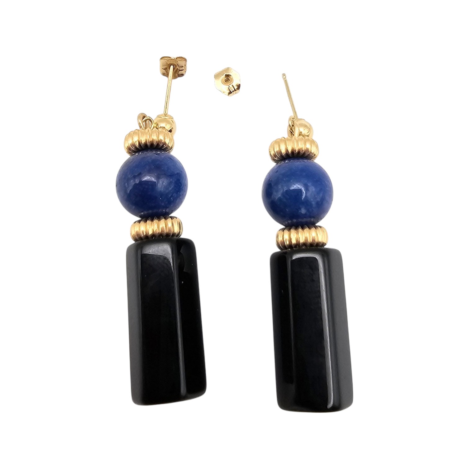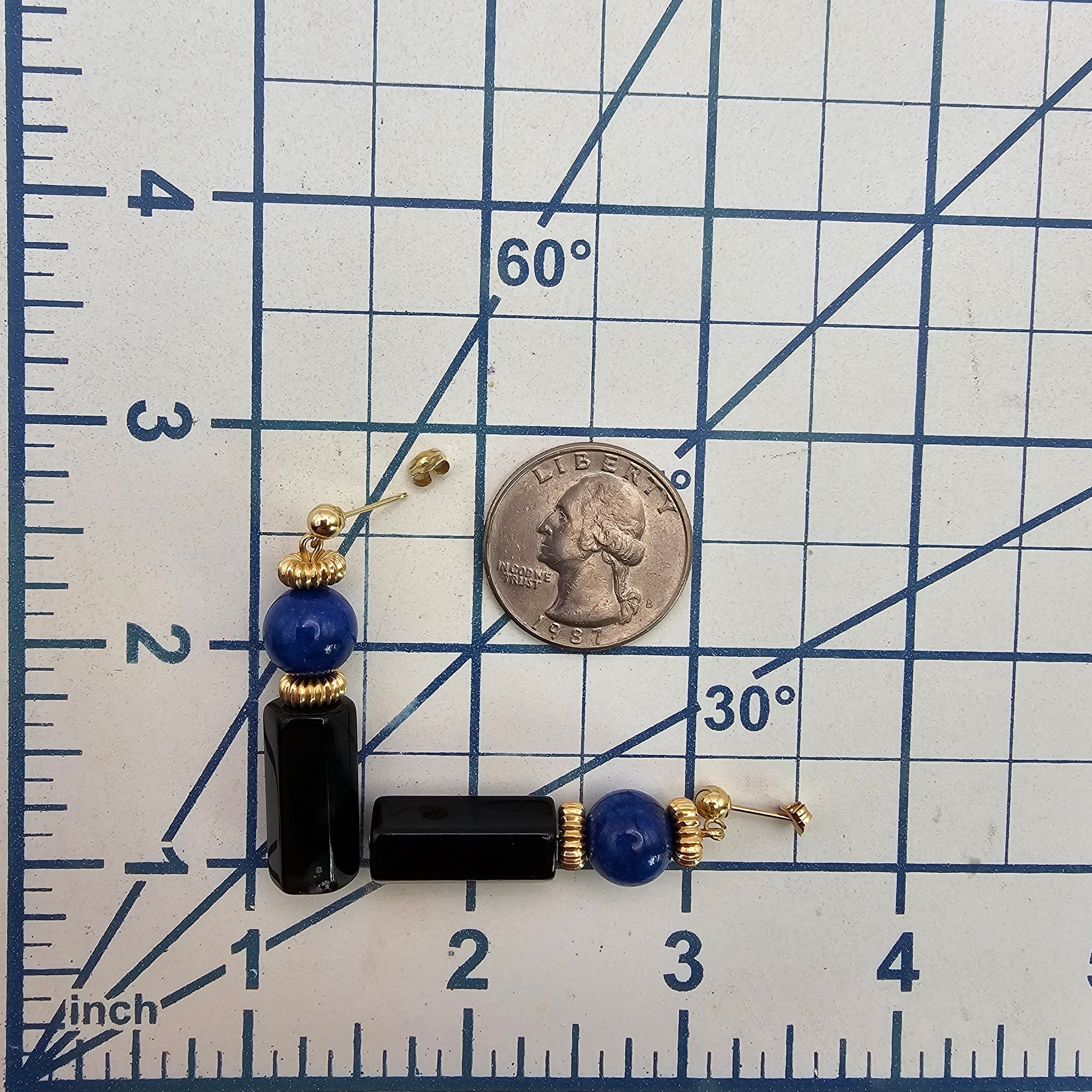 14K Gold Onyx Lapis Dangle Earrings 11.2 G