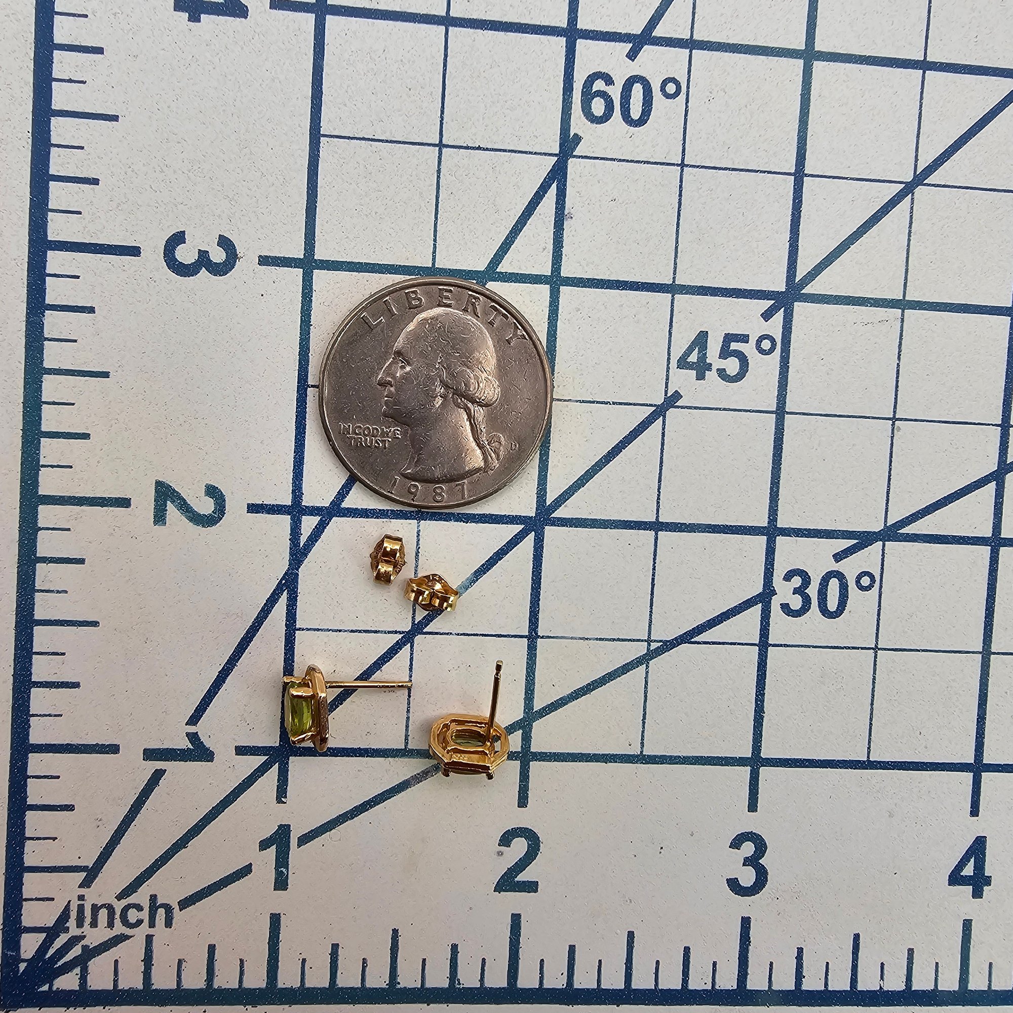 14K Gold Peridot Earrings 1.4 G Approximately 1 TCW
